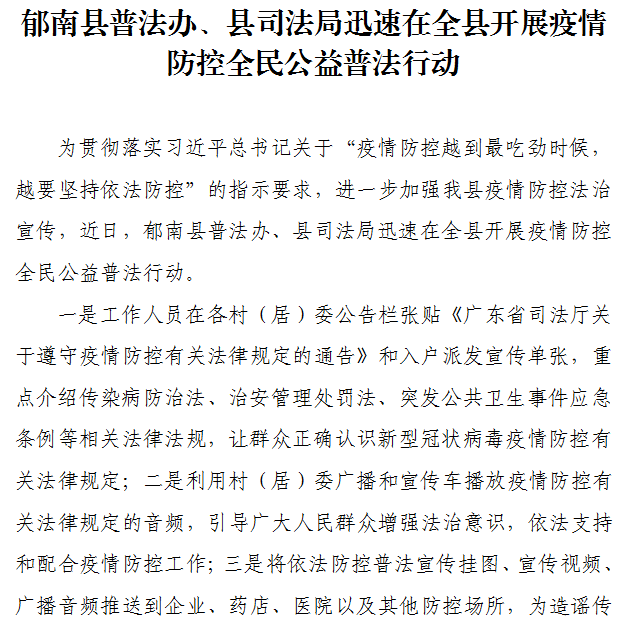 郁南縣普法辦、縣司法局迅速在全縣開展疫情防控全民公益普法行動