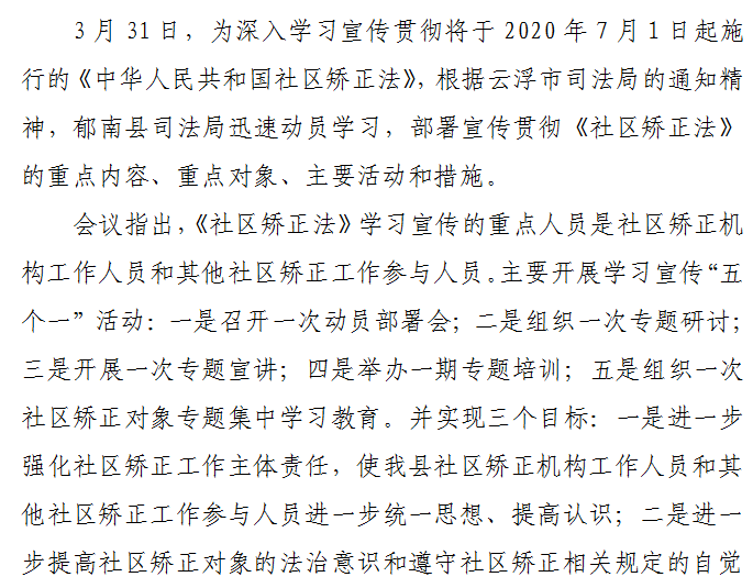 郁南縣司法局迅速動(dòng)員部署《社區(qū)矯正法》學(xué)習(xí)宣傳貫徹工作