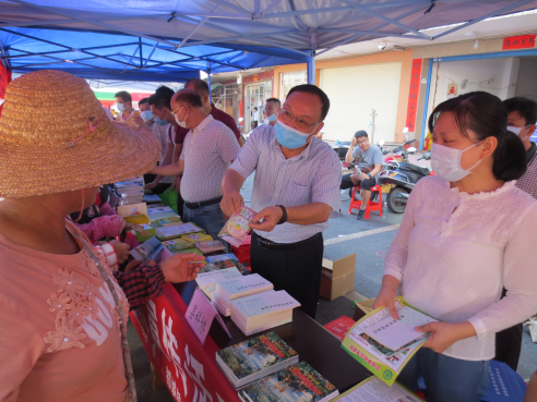 為普及科學(xué)技術(shù)知識(shí),向廣大人民群眾開展科技服務(wù),7月21日上午,郁南縣科技局、縣科協(xié)組織縣農(nóng)業(yè)農(nóng)村局、縣自然資源局、縣應(yīng)急管理局等多個(gè)部門單位在都城鎮(zhèn)商貿(mào)城舉辦“科技集市”活動(dòng),副縣長譚樹才親臨現(xiàn)場(chǎng)指導(dǎo),帶領(lǐng)各部門工作人員為前來咨詢的群眾派發(fā)資料、解難答疑。