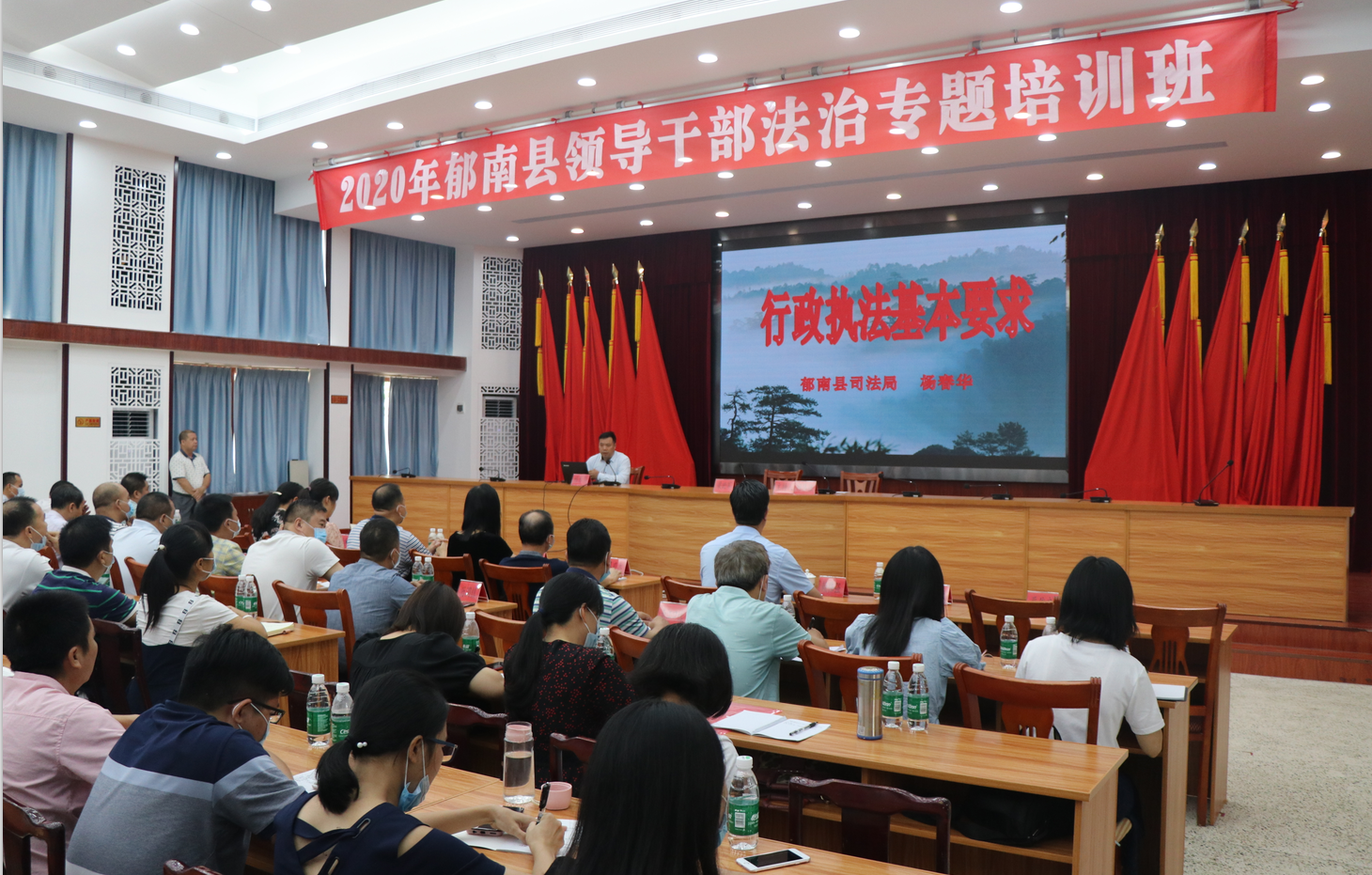 為進(jìn)一步提高領(lǐng)導(dǎo)干部法治思維和依法辦事能力,切實(shí)加快全面依法治縣工作步伐,8月26日上午,郁南縣舉辦2020年全縣領(lǐng)導(dǎo)干部法治專題培訓(xùn)班。縣委副書記、政法委書記、縣委全面依法治縣委員會副主任、縣委全面依法治縣委員會辦公室主任梁世軍出席會議,各鎮(zhèn)各部門分管領(lǐng)導(dǎo)及業(yè)務(wù)骨干共180多人參加培訓(xùn)。
