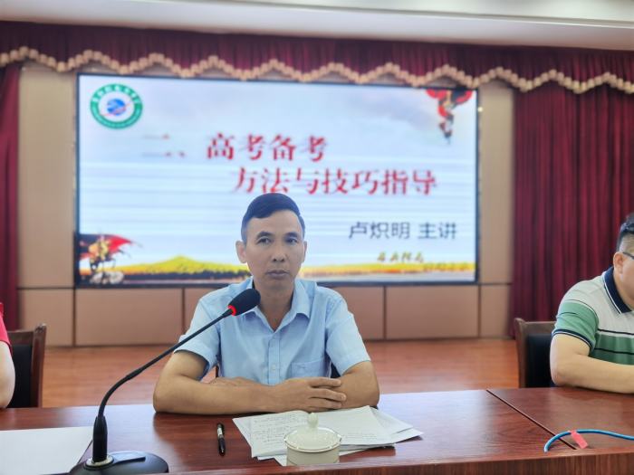隨后,學(xué)校黨總支書記、校長盧熾明從“態(tài)度決定高度,細節(jié)決定成敗”主題就“高考備考方法與技巧指導(dǎo)”和學(xué)生進行交流指導(dǎo):一是如何聽課。1、課前準(zhǔn)備----包括知識的準(zhǔn)備和學(xué)習(xí)用品的準(zhǔn)備;2、上課的要求----激情(坐端正、手握筆、集中精神)、五到(耳到、眼到、口到、手到、腦到);3、課后要循環(huán)、重復(fù)考點。二是怎樣做題。1、提高對做題的認(rèn)識;2、做題前先理清考點;3、做題時不翻書;4、選擇合適自己做的題;5、做題要思考、歸納總結(jié);6、及時整理錯題(包括會做但做不好的);7、同樣的試卷做兩遍;8、每次練習(xí)要像高考一樣要求。