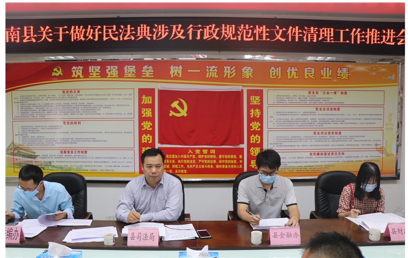 為進(jìn)一步做好民法典涉及行政規(guī)范性文件清理工作,10月27日下午,縣司法局組織召開(kāi)民法典涉及行政規(guī)范性文件清理工作推進(jìn)會(huì)。會(huì)議由縣司法局副局長(zhǎng)楊春華主持,縣委編辦、縣衛(wèi)生健康局、縣住房和城鄉(xiāng)建設(shè)局等部門(mén)20多名業(yè)務(wù)骨干參加。