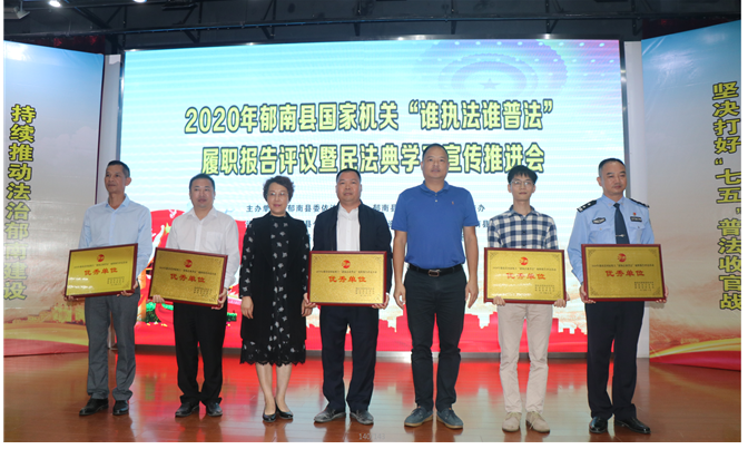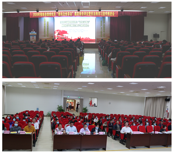 為深入貫徹落實(shí)習(xí)近平總書記全面依法治國新理念新思想新戰(zhàn)略,10月29日上午,郁南縣召開2020年國家機(jī)關(guān)“誰執(zhí)法誰普法”履職報(bào)告評(píng)議暨民法典學(xué)習(xí)宣傳推進(jìn)會(huì)??h委副書記、政法委書記梁世軍,縣委常委、宣傳部部長李永盈出席,履職報(bào)告評(píng)議團(tuán)成員、被評(píng)議單位以及各鎮(zhèn)、縣直副科以上單位、上級(jí)駐郁南各單位負(fù)責(zé)人及業(yè)務(wù)骨干等200多人參加。