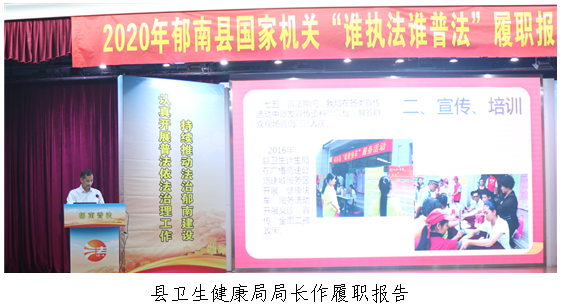 據(jù)悉,本次“誰執(zhí)法誰普法”履職報(bào)告評(píng)議會(huì)是我縣“七五普法”以來規(guī)格最高、規(guī)模最大的一次現(xiàn)場評(píng)議。被評(píng)議單位主要是由局長作履職報(bào)告,通過單位一把手將本單位普法工作擺出來、亮出來,自覺接受評(píng)議監(jiān)督,變普法“軟任務(wù)”為“硬指標(biāo)”,全面推動(dòng)全縣國家機(jī)關(guān)落實(shí)“誰執(zhí)法誰普法”“誰服務(wù)誰普法”“誰主管誰負(fù)責(zé)”工作主體責(zé)任。
