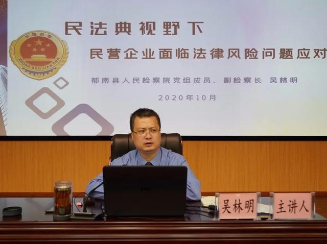 為進(jìn)一步深化“服務(wù)‘六穩(wěn)’‘六?!o(hù)航民企發(fā)展”主題檢察開放日活動(dòng),維護(hù)民營(yíng)企業(yè)家人身安全和財(cái)產(chǎn)安全,保障民營(yíng)企業(yè)健康發(fā)展,扎實(shí)推進(jìn)《民法典》全面深入實(shí)施,近日,郁南縣人民檢察院黨組成員、副檢察長(zhǎng)吳林明發(fā)揮引領(lǐng)作用,以《民法典視野下,民營(yíng)企業(yè)面臨法律風(fēng)險(xiǎn)問題應(yīng)對(duì)》為題開展普法講座,現(xiàn)場(chǎng)邀請(qǐng)了郁南縣企業(yè)家代表、人大代表、政協(xié)委員等40余人參加了講座。