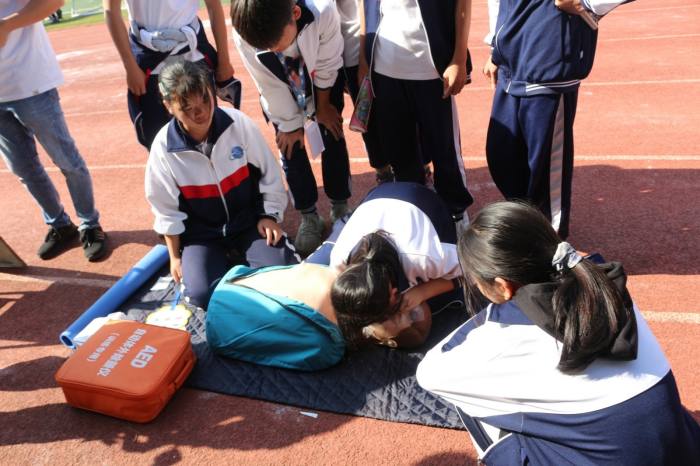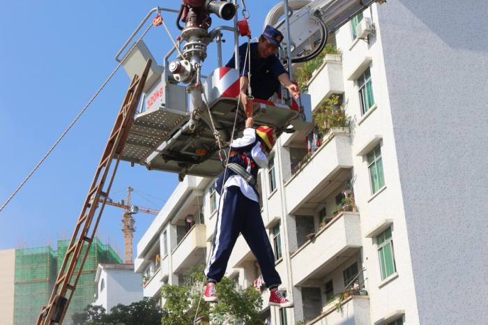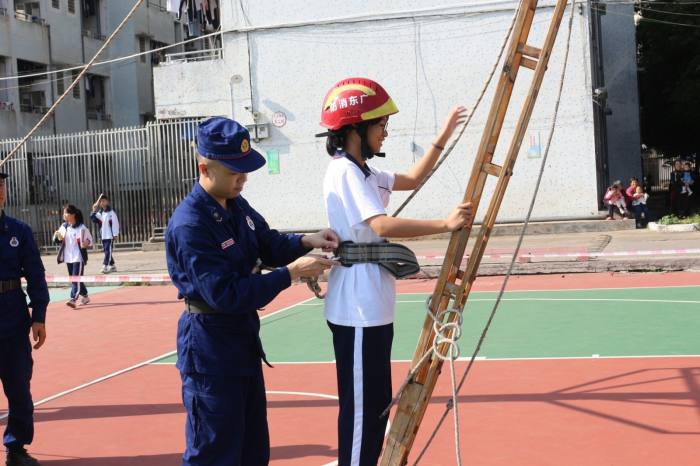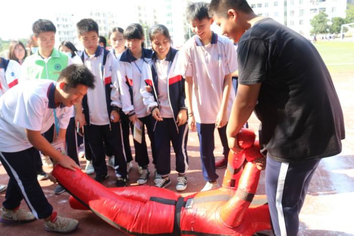 上午九點(diǎn),我校七、八年級和高一級1500多名學(xué)生在宿舍區(qū)進(jìn)行了消防演練后,組織開展豐富多彩的消防安全知識技能體驗(yàn)活動。這些體驗(yàn)活動包括對煙熱逃生、逃生面罩的佩戴、救生緩降器的使用、救生繩索打結(jié)、滅火器的操作使用、細(xì)水霧滅火體驗(yàn)、消防救援服穿著、假人心肺復(fù)蘇體驗(yàn)、液壓破拆工具夾啤酒瓶(乒乓球)等消防安全知識技能。