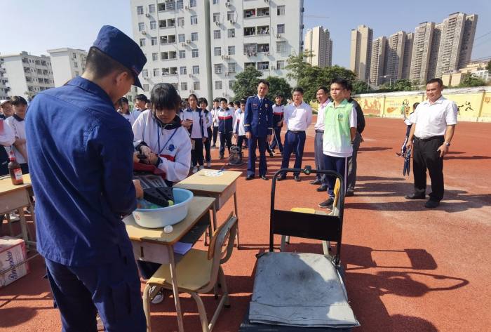 為切實(shí)做好學(xué)校的安全工作,提高全校師生的安全意識,確保師生的生命安全,培養(yǎng)師生在遇到火災(zāi)、地震等突發(fā)事件時(shí)的應(yīng)變能力,借郁南縣2020年“119”消防宣傳月活動啟動儀式暨冬季火災(zāi)防范工作動員部署會在紀(jì)中舉行的東風(fēng),蔡朝焜紀(jì)念中學(xué)開展消防安全知識技能體驗(yàn)活動。