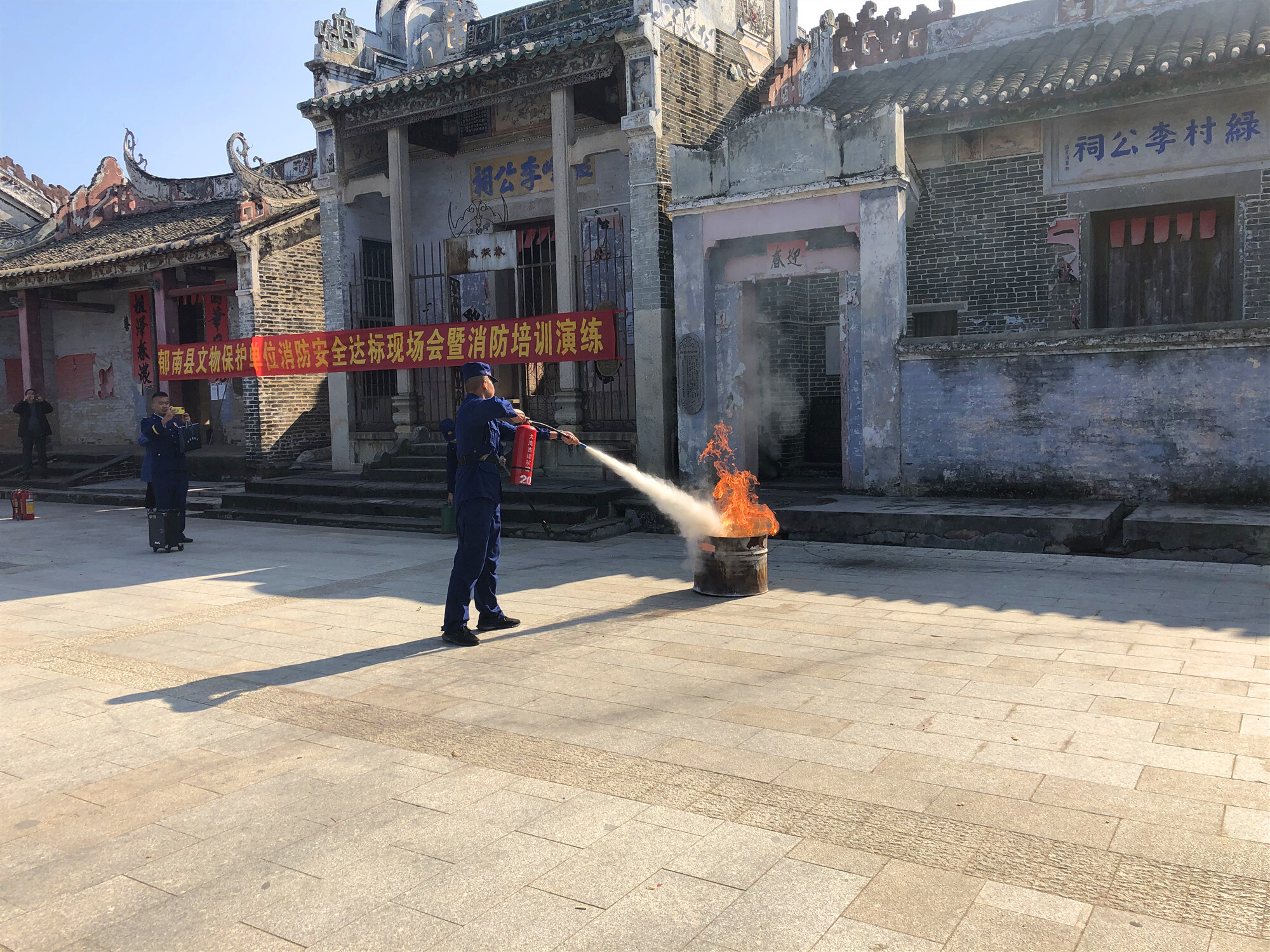 為進(jìn)一步落實(shí)全縣文物保護(hù)單位消防安全責(zé)任,提高消防安全管理水平,增強(qiáng)主體責(zé)任主體意識(shí)和防控火災(zāi)的能力,有效預(yù)防和減少火災(zāi)事故發(fā)生,確保文物安全,近日,郁南縣在大灣鎮(zhèn)五星村大灣古建筑群舉辦文物保護(hù)單位消防安全達(dá)標(biāo)現(xiàn)場(chǎng)會(huì)暨消防培訓(xùn)演練。郁南縣文化廣電旅游體育局、縣消防救援大隊(duì)主要負(fù)責(zé)人、縣住房和城鄉(xiāng)建設(shè)局分管負(fù)責(zé)人和相關(guān)人員、各鎮(zhèn)政府分管負(fù)責(zé)人及負(fù)責(zé)文物保護(hù)工作人員、縣博物館負(fù)責(zé)人、廣東南江田園文化旅游投資有限公司相關(guān)負(fù)責(zé)人及負(fù)責(zé)消防安全工作人員參加了此次活動(dòng)。