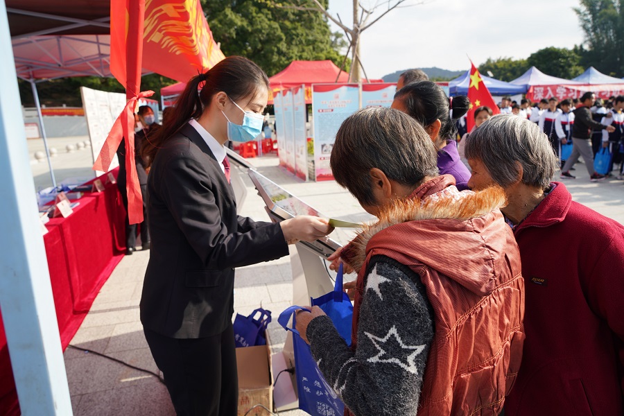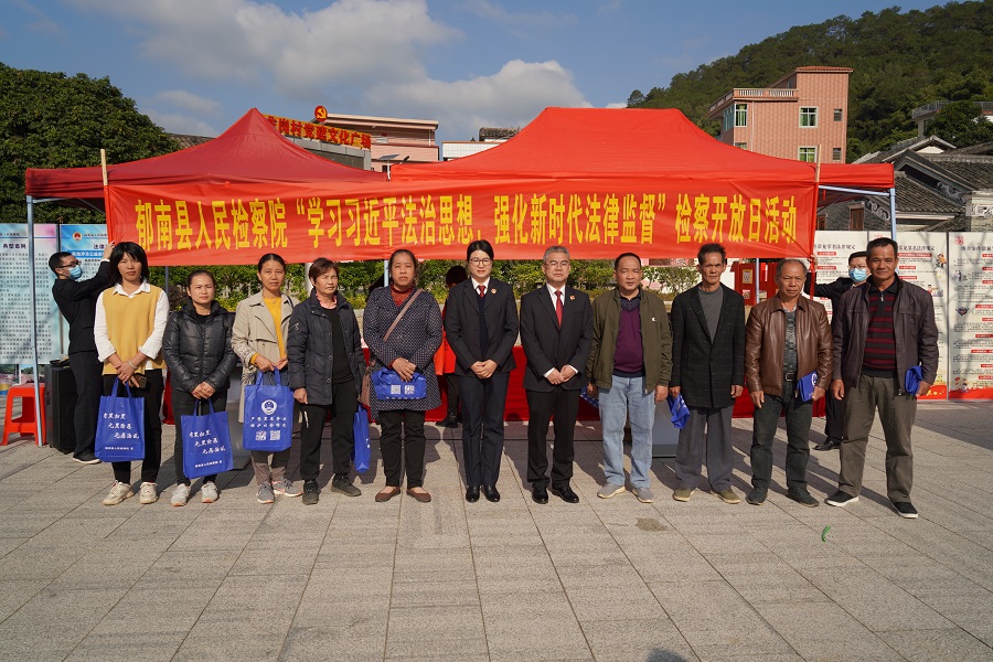 為深入學(xué)習(xí)貫徹習(xí)近平法治思想,弘揚(yáng)憲法精神,加強(qiáng)新時(shí)代法律監(jiān)督工作,12月3日,郁南縣檢察院舉行“學(xué)習(xí)習(xí)近平法治思想,強(qiáng)化新時(shí)代法律監(jiān)督”檢察開(kāi)放日活動(dòng),首次以走進(jìn)鎮(zhèn)村形式開(kāi)展豐富多彩的普法宣傳活動(dòng)。當(dāng)?shù)厝舜蟠怼⒔處煂W(xué)生、群眾等200多人現(xiàn)場(chǎng)參與。