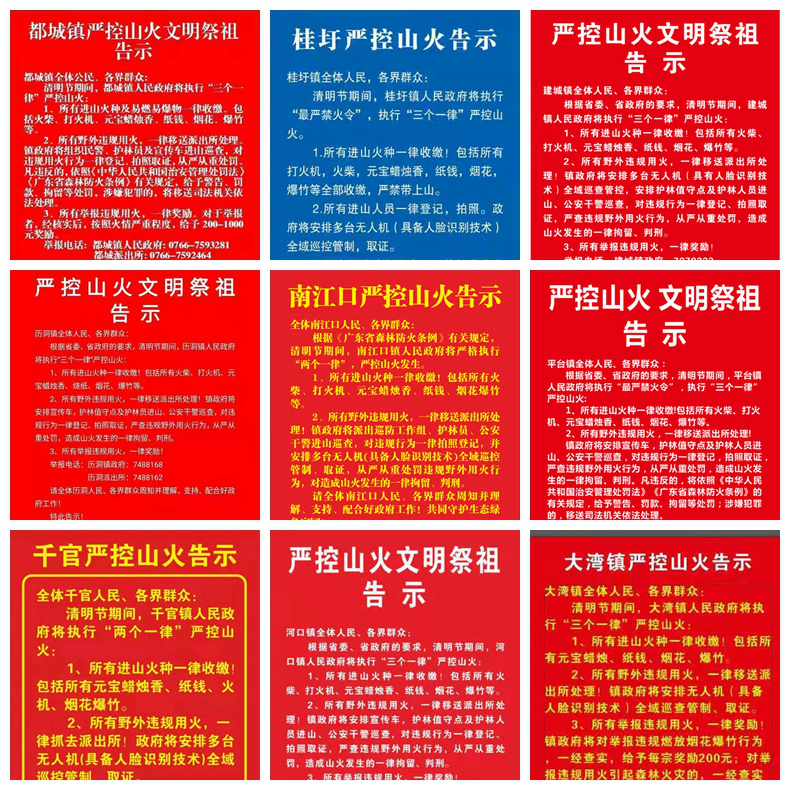 ▲各鎮(zhèn)發(fā)布嚴(yán)控山火文明祭祖告示
