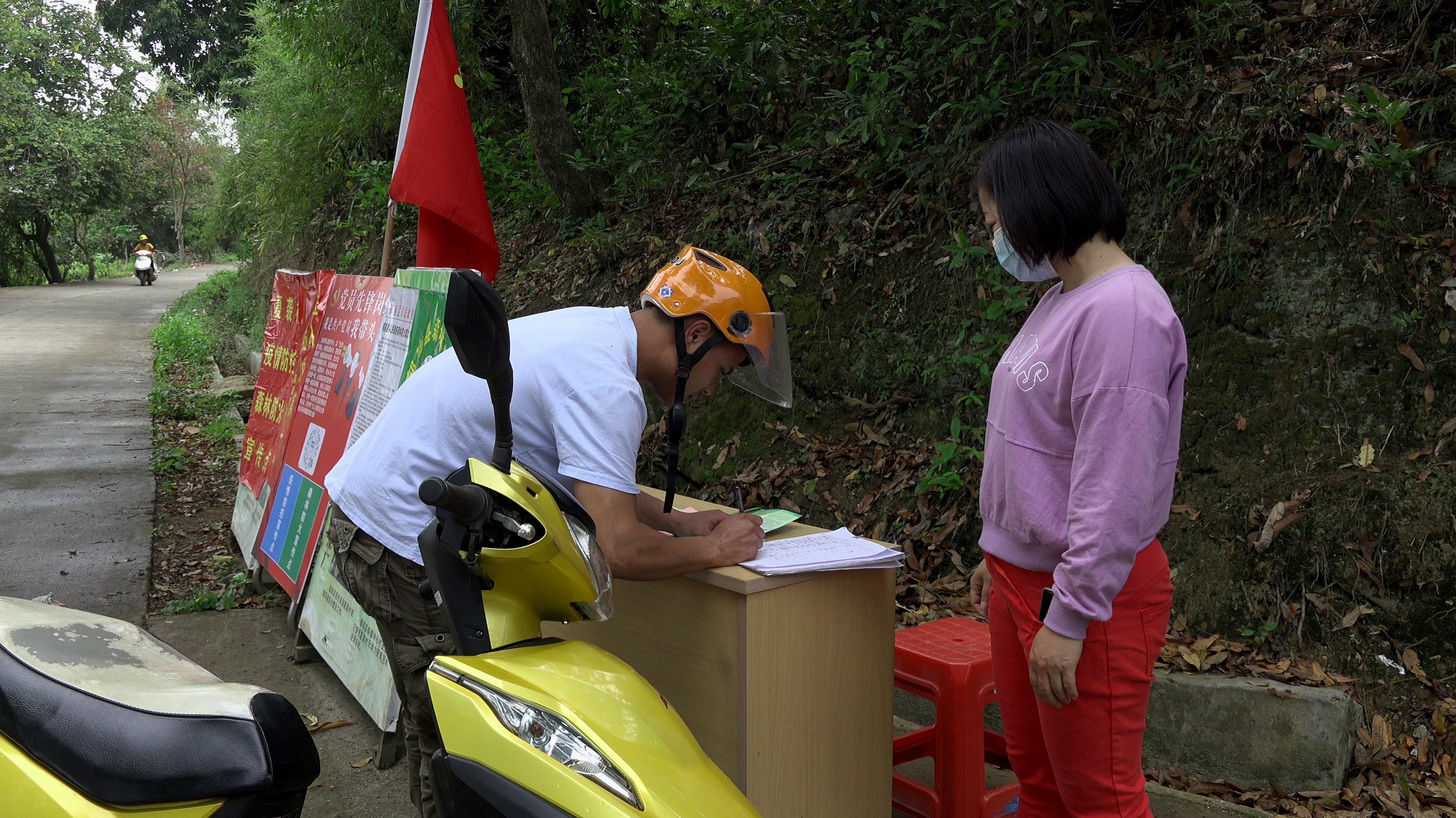 ▲村民在森林防火檢查點(diǎn)進(jìn)行進(jìn)山登記