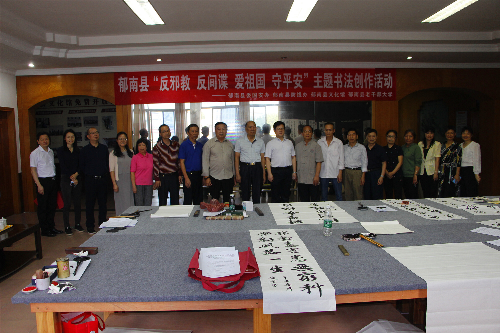 2021年4月15日是第六個(gè)全民國(guó)家安全教育日,為推動(dòng)國(guó)家安全宣傳教育深入開展,進(jìn)一步增強(qiáng)全民國(guó)家安全意識(shí),豐富群眾的文化生活,由郁南縣委國(guó)安辦、郁南縣防線辦、郁南縣文化館、郁南縣老干部大學(xué)聯(lián)合舉辦的“反邪教 反間諜 愛祖國(guó) 守平安”主題書法創(chuàng)作活動(dòng)在郁南縣文化館三樓書畫活動(dòng)室舉行,中共郁南縣委副書記、縣委政法委書記姚家耕同志出席活動(dòng),縣直相關(guān)部門人員、退休黨員干部職工近30人參加?;顒?dòng)參與人員圍繞“反邪教 反間諜 愛祖國(guó) 守平安”的主題即席揮毫,創(chuàng)作出不同的書體和風(fēng)格的書法作品。