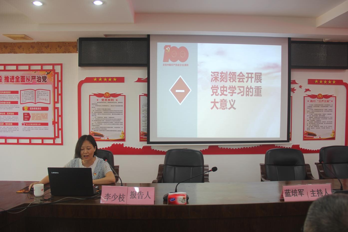 李少枝老師圍繞《百年黨史——初心、苦難、奮斗、輝煌》主題,進(jìn)行了系統(tǒng)講解,通過(guò)理論闡釋、案例剖析等方面講述中國(guó)共產(chǎn)黨百年歷史以及所取得的成就。