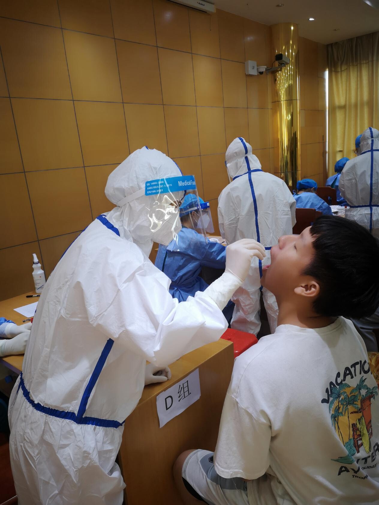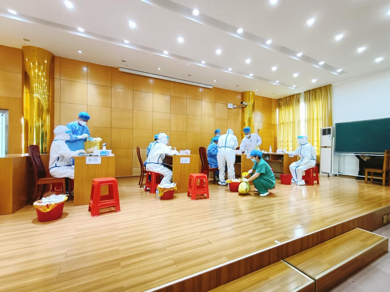 為落實省、市“健康高考”、“平安高考”的工作要求,根據(jù)廣東省教育廳《關于做好2021年高考疫情防控工作的緊急通知》精神,在縣委、縣政府的統(tǒng)一部署下,6月1日上午,郁南縣第二人民醫(yī)院組織醫(yī)護人員對連灘中學全體高三考生、考務人員和帶考教師開展了核酸采樣檢測工作。此外,為了強化高考疫情防控工作,學校選派的考務工作人員和監(jiān)考工作人員實現(xiàn)了疫苗接種全覆蓋。