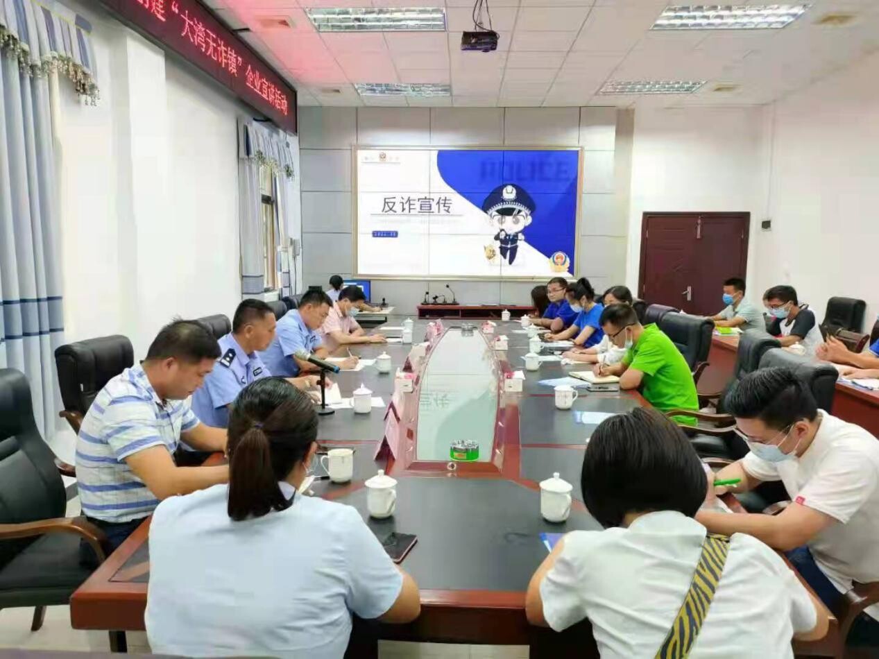 為有效遏制電信網(wǎng)絡(luò)詐騙高發(fā)態(tài)勢,進一步延伸反電詐宣傳活動的覆蓋面,切實形成“全民反詐”的意識,提升群眾安全感、滿意度及對政法工作知曉率,深入踐行“我為群眾辦實事”,8月31日,縣委政法委會同縣公安局走進大灣鎮(zhèn)產(chǎn)業(yè)轉(zhuǎn)移園區(qū),開展以“‘企業(yè)無詐,你我共建’--創(chuàng)建‘大灣無詐鎮(zhèn)’”為主題的反詐宣傳進企業(yè)活動。市公安局刑偵支隊政委崔林波、縣產(chǎn)業(yè)園區(qū)主任陶林泉、縣委政法委專職副書記張峽環(huán)、縣公安局副局長莫星泉,園區(qū)全體企業(yè)代表等出席該活動。