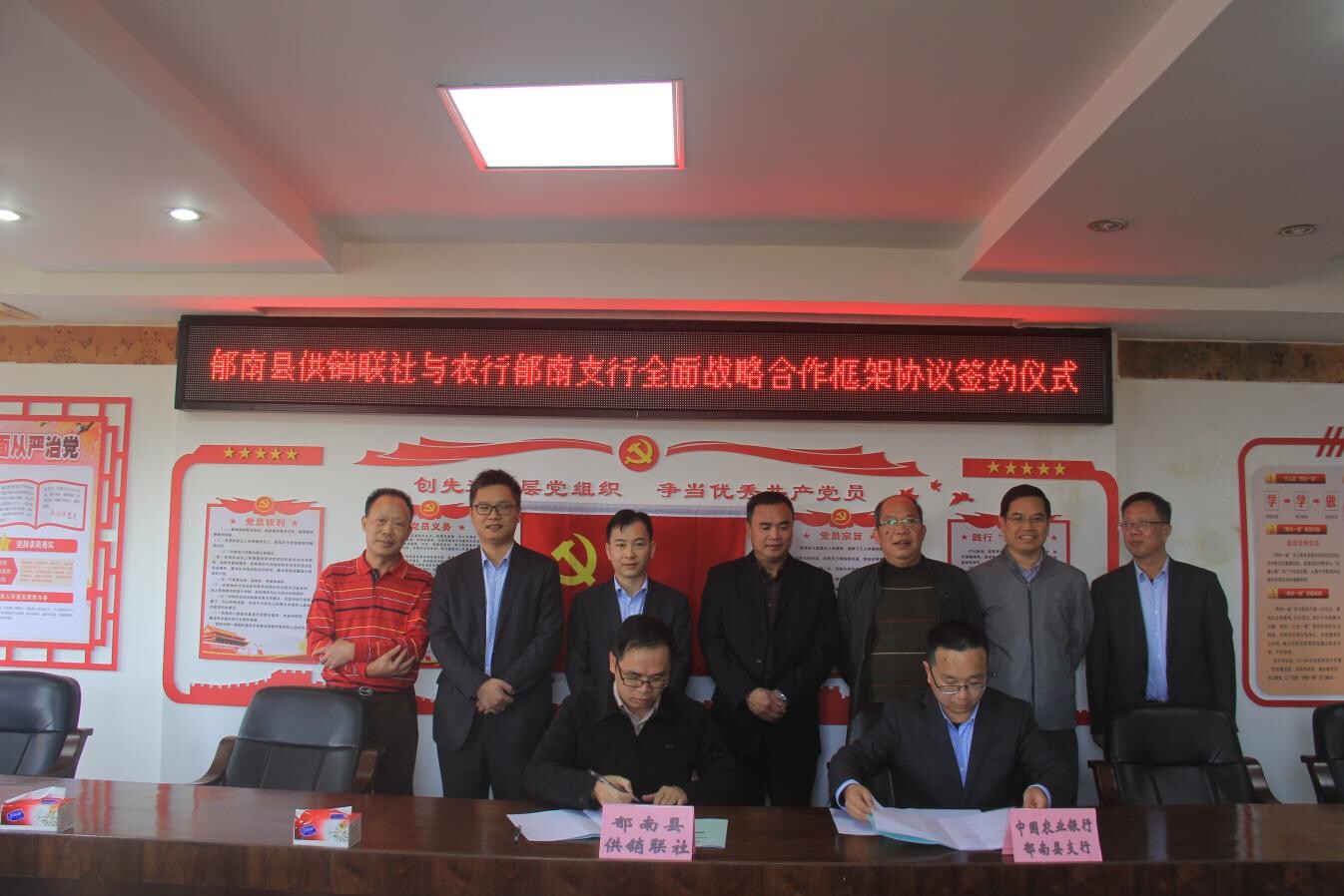 縣供銷聯(lián)社主任羅樹燦代表縣供銷系統(tǒng)感謝農(nóng)行郁南縣支行對郁南縣供銷事業(yè)發(fā)展的大力支持。雙方合作是貫徹落實省、市關(guān)于深化供銷合作社綜合改革的工作部署,圍繞農(nóng)村金融服務(wù)網(wǎng)絡(luò)建設(shè),共同助力我縣鄉(xiāng)村振興戰(zhàn)略實施。縣供銷系統(tǒng)將充分發(fā)揮農(nóng)資農(nóng)技服務(wù)網(wǎng)絡(luò)、農(nóng)產(chǎn)品冷鏈物流網(wǎng)絡(luò)、放心農(nóng)產(chǎn)品產(chǎn)銷對接網(wǎng)絡(luò)等經(jīng)營優(yōu)勢,強化金融戰(zhàn)略合作,推進“三位一體”綜合合作改革工作,積極搭建農(nóng)村金融服務(wù)網(wǎng)絡(luò),攜手助力鄉(xiāng)村振興的重要舉措。