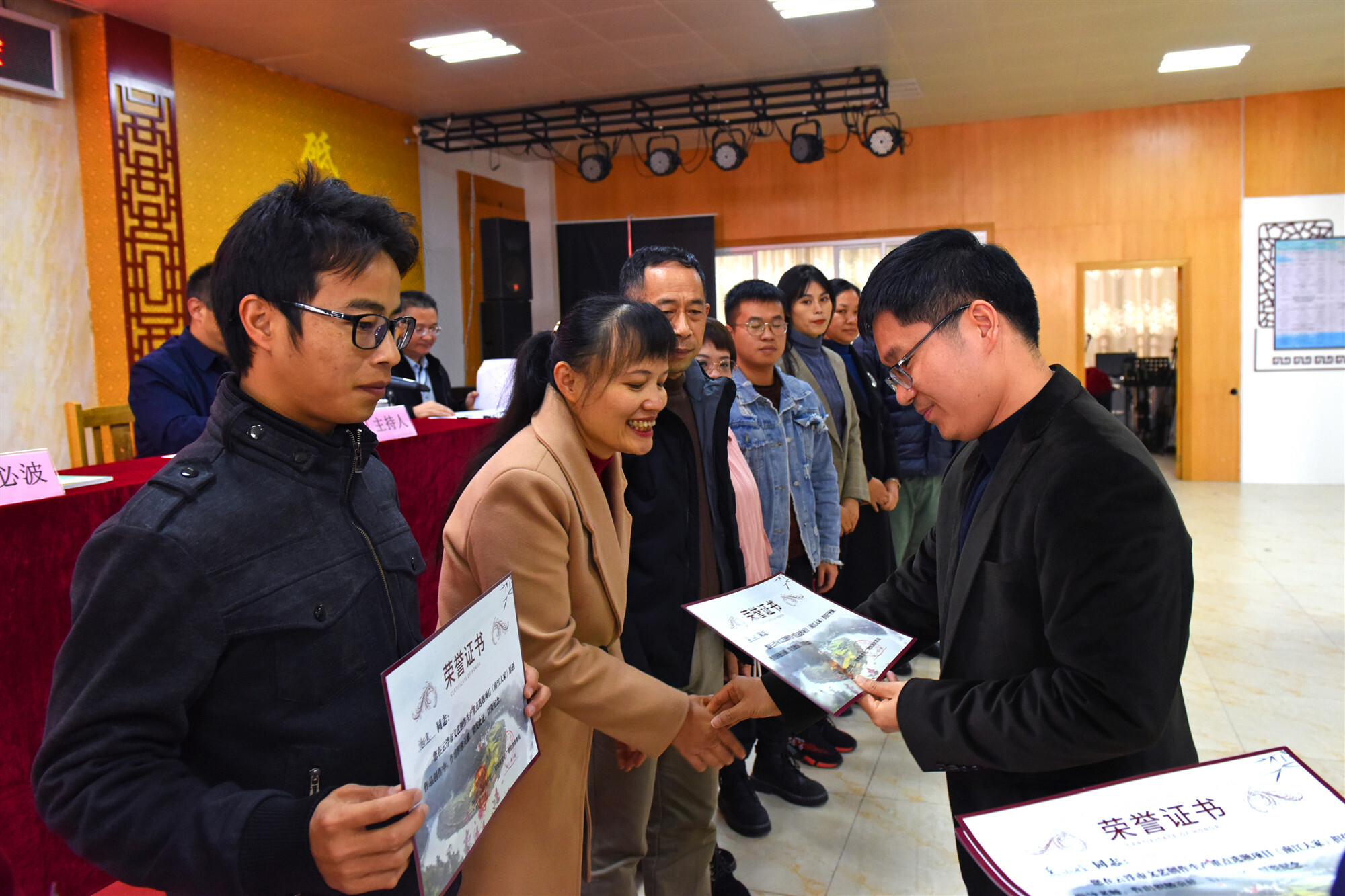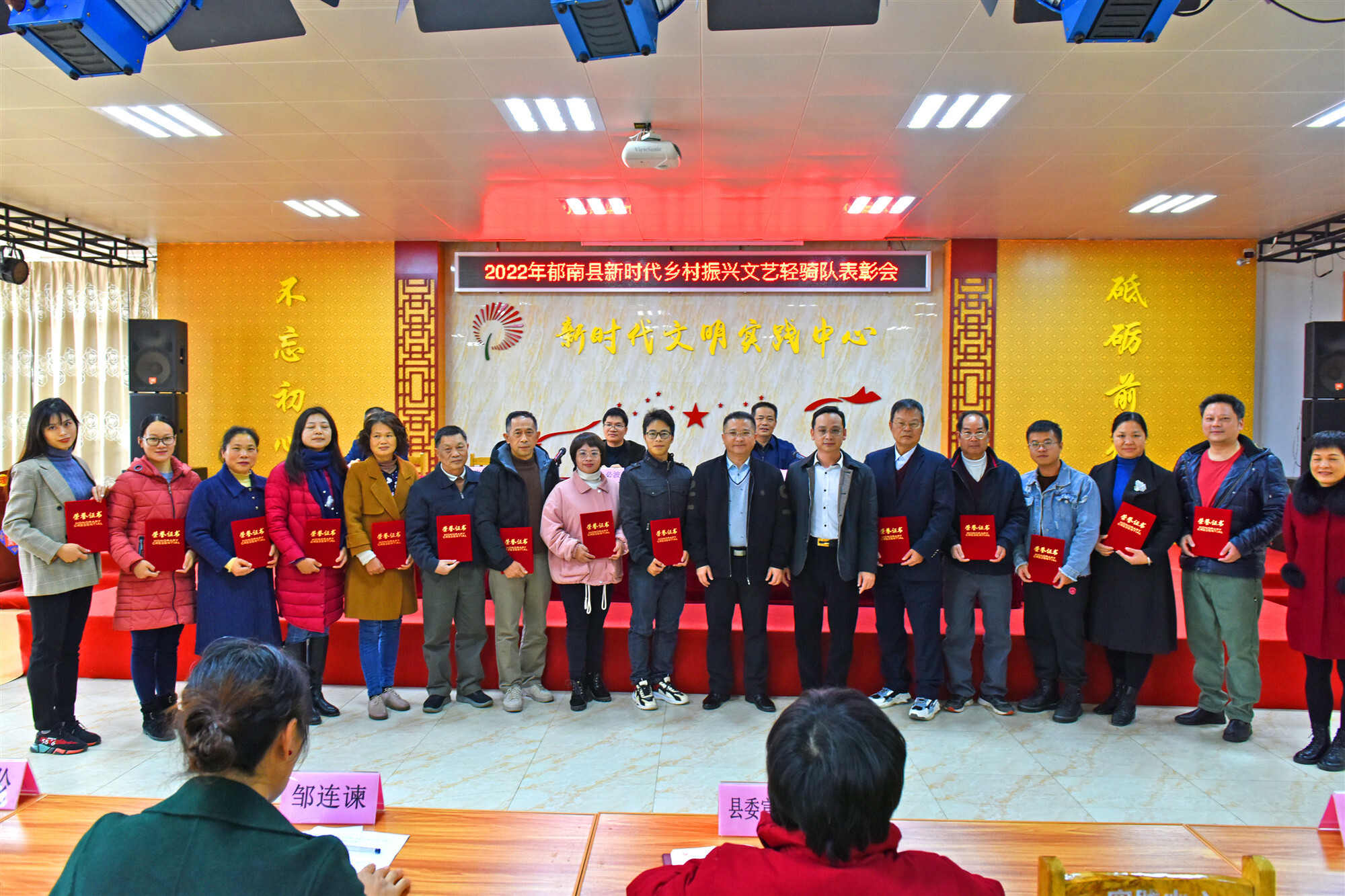 隨后,與會領導分別為榮獲2020年度云浮市群眾文藝創(chuàng)作以及為云浮市文藝創(chuàng)作生產重點選題項目《南江人家》作出積極貢獻獎、郁南縣新時代鄉(xiāng)村振興文藝輕騎隊突出貢獻獎、精神建設獎、貢獻獎的20多名獲獎人員分別頒發(fā)了證書,勉勵其凝心聚力、戒驕戒躁、砥礪前行,為郁南文化事業(yè)繁榮發(fā)展再立新功。