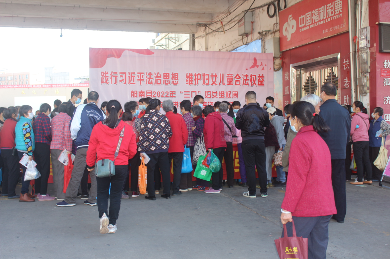 為引導(dǎo)廣大婦女及家庭學(xué)法遵法守法用法,依法維護(hù)自身合法權(quán)益,在全社會(huì)營(yíng)造男女平等、和諧共進(jìn)的良好氛圍,3月8日上午,縣婦聯(lián)聯(lián)合縣紀(jì)委、縣委政法委、縣司法局、縣總工會(huì)、團(tuán)縣委、縣法院、縣檢察院等相關(guān)單位在縣城文化廣場(chǎng),舉辦“踐行習(xí)近平法治思想維護(hù)婦女兒童合法權(quán)益”郁南縣2022年“三八”婦女維權(quán)周暨廉潔文化進(jìn)家庭宣傳咨詢活動(dòng)和開(kāi)展婦女維權(quán)熱線12338主席接聽(tīng)日活動(dòng)。