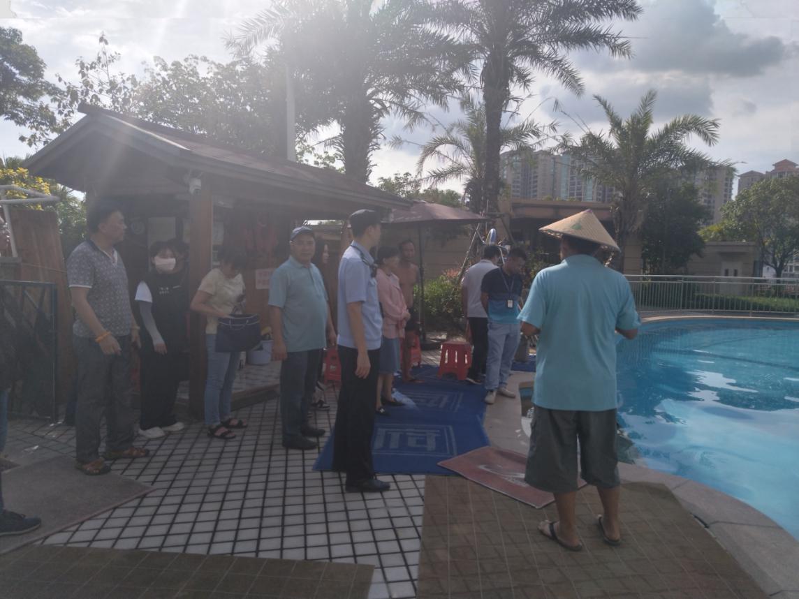 聯(lián)合檢查組先后檢查了縣城體育中心漢藝游泳池、碧桂園西江府輝騰游泳池、郁南縣大王山泳池、都城凌波山莊游泳池共計4家泳池,圍繞各經(jīng)營性泳池是否制訂有相關(guān)規(guī)章制度上墻、是否配備足額的救生人員上崗、是否按規(guī)定配備相應(yīng)的救生設(shè)備設(shè)施、從業(yè)人員是否參加安全項目技能培訓(xùn)并取得相關(guān)執(zhí)業(yè)證書等重點項目,各相關(guān)成員單位均結(jié)合自身職責(zé)細(xì)致檢查了對應(yīng)項目。同時,聯(lián)合執(zhí)法檢查組工作人員督促游泳池主要負(fù)責(zé)人,要提醒進(jìn)場游泳的家長看管好各自的未成年兒女,同時在泳池周邊加強(qiáng)安全警示提示標(biāo)語。本次行動出動檢查人員48人次,檢查游泳池經(jīng)營單位4家次,發(fā)現(xiàn)個別泳池存在監(jiān)控攝像頭不足或沒有,安全警示標(biāo)識不足等問題,聯(lián)合執(zhí)法檢查組即時要求經(jīng)營者現(xiàn)場整改,未能現(xiàn)場整改完畢的,檢查組后續(xù)跟進(jìn)落實。