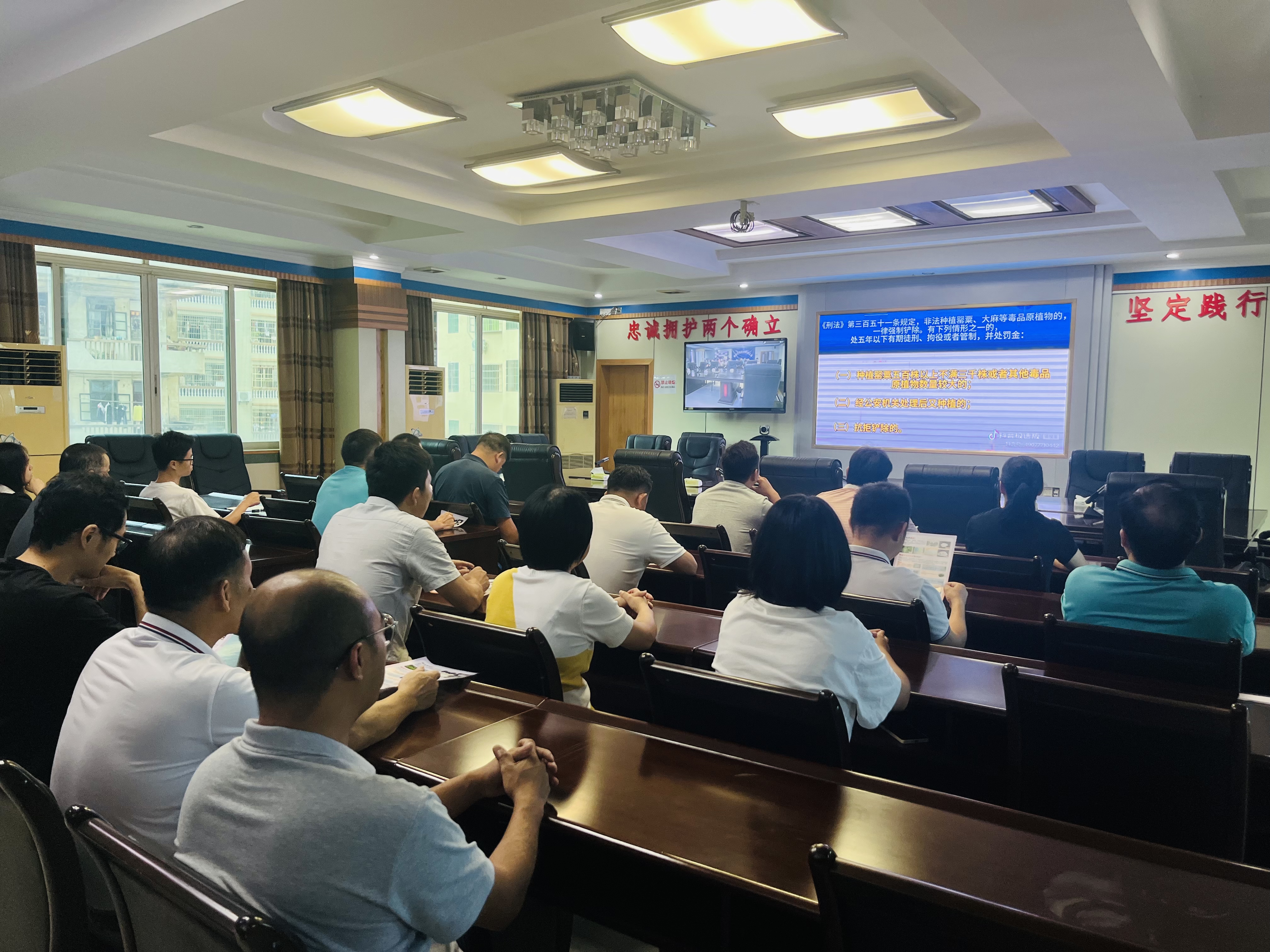 活動(dòng)現(xiàn)場(chǎng),活動(dòng)現(xiàn)場(chǎng),工作人員通過(guò)發(fā)放宣傳資料、組織觀看宣傳教育視頻等形式向單位職工詳細(xì)介紹了毒品原植物的種類(lèi)、特征以及非法種植毒品原植物的危害和法律后果。