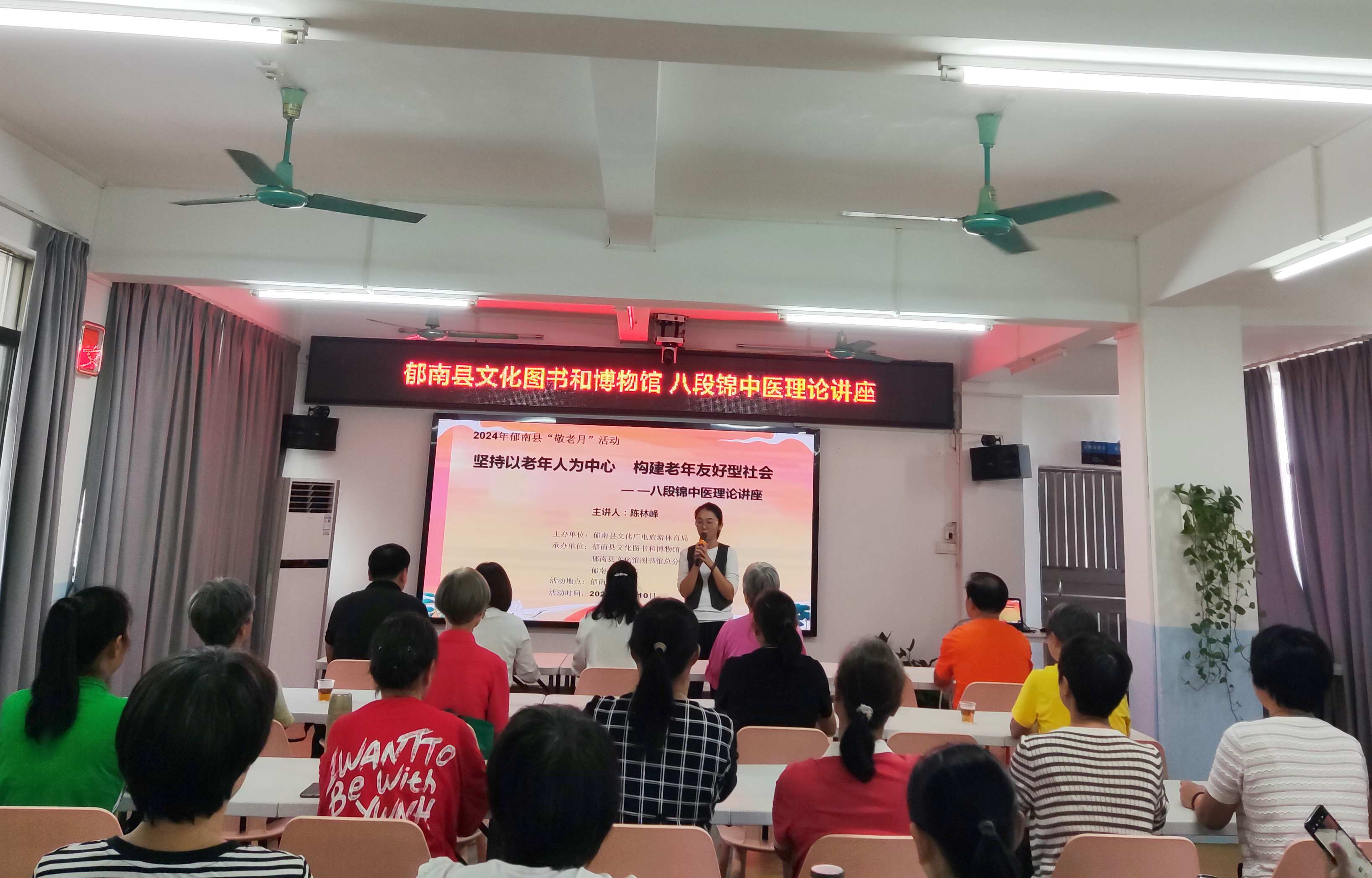 為弘揚(yáng)中華民族孝親敬老傳統(tǒng)美德,營(yíng)造養(yǎng)老孝老敬老良好社會(huì)氛圍,10月10日,郁南縣文化廣電旅游體育局、郁南縣文化圖書和博物館聯(lián)合郁南縣中醫(yī)院在縣圖書館舉辦了八段錦中醫(yī)理論詮釋講座。