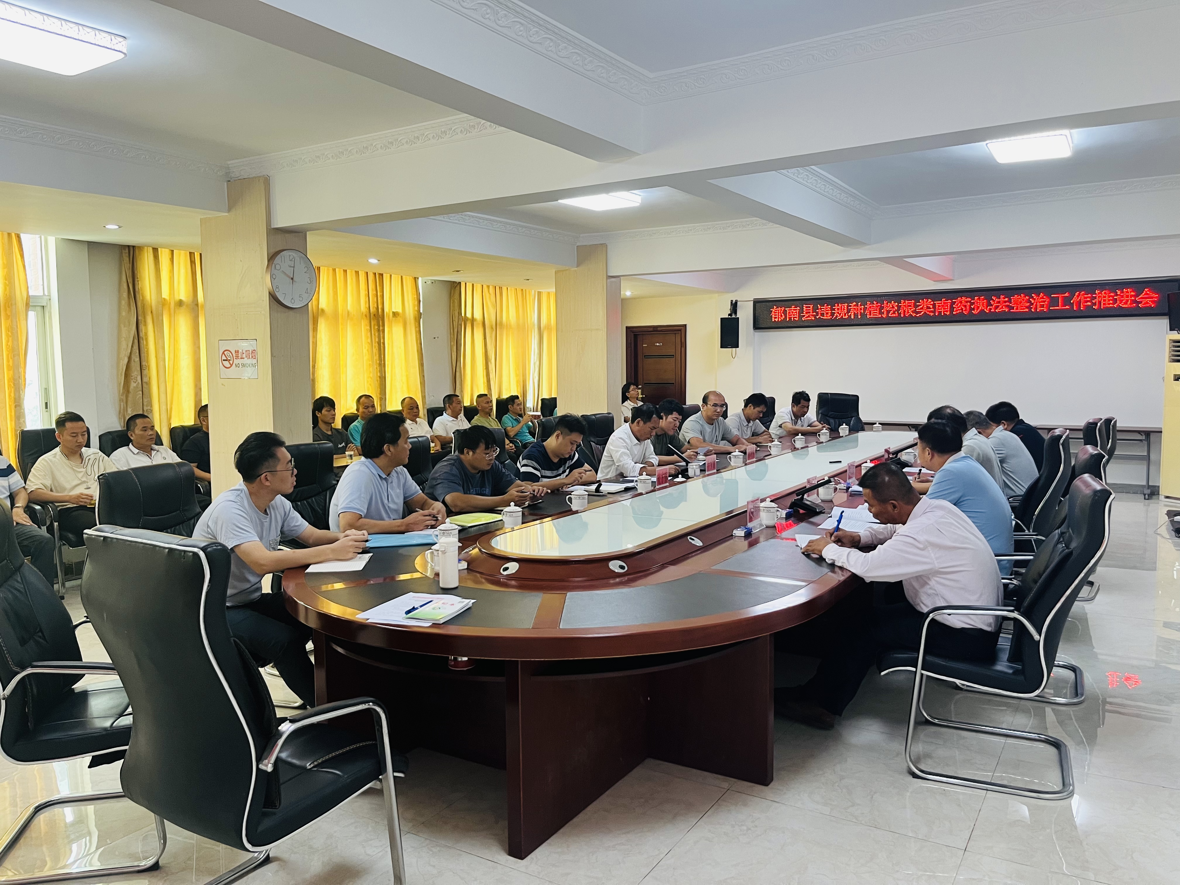 為全力推進違規(guī)種植挖根類南藥執(zhí)法整治工作,10月12日上午,郁南縣整治違規(guī)種植挖根類南藥工作領(lǐng)導(dǎo)小組組織千官、大方、歷洞鎮(zhèn)分管林業(yè)工作的鎮(zhèn)領(lǐng)導(dǎo)、林業(yè)工作站負責人、縣公安局、縣水務(wù)局、縣應(yīng)急管理局、縣林業(yè)局分管負責人和縣林業(yè)局林業(yè)執(zhí)法隊伍共約30人在千官鎮(zhèn)人民政府二樓會議室召開郁南縣違規(guī)種植挖根類南藥執(zhí)法整治工作推進會。