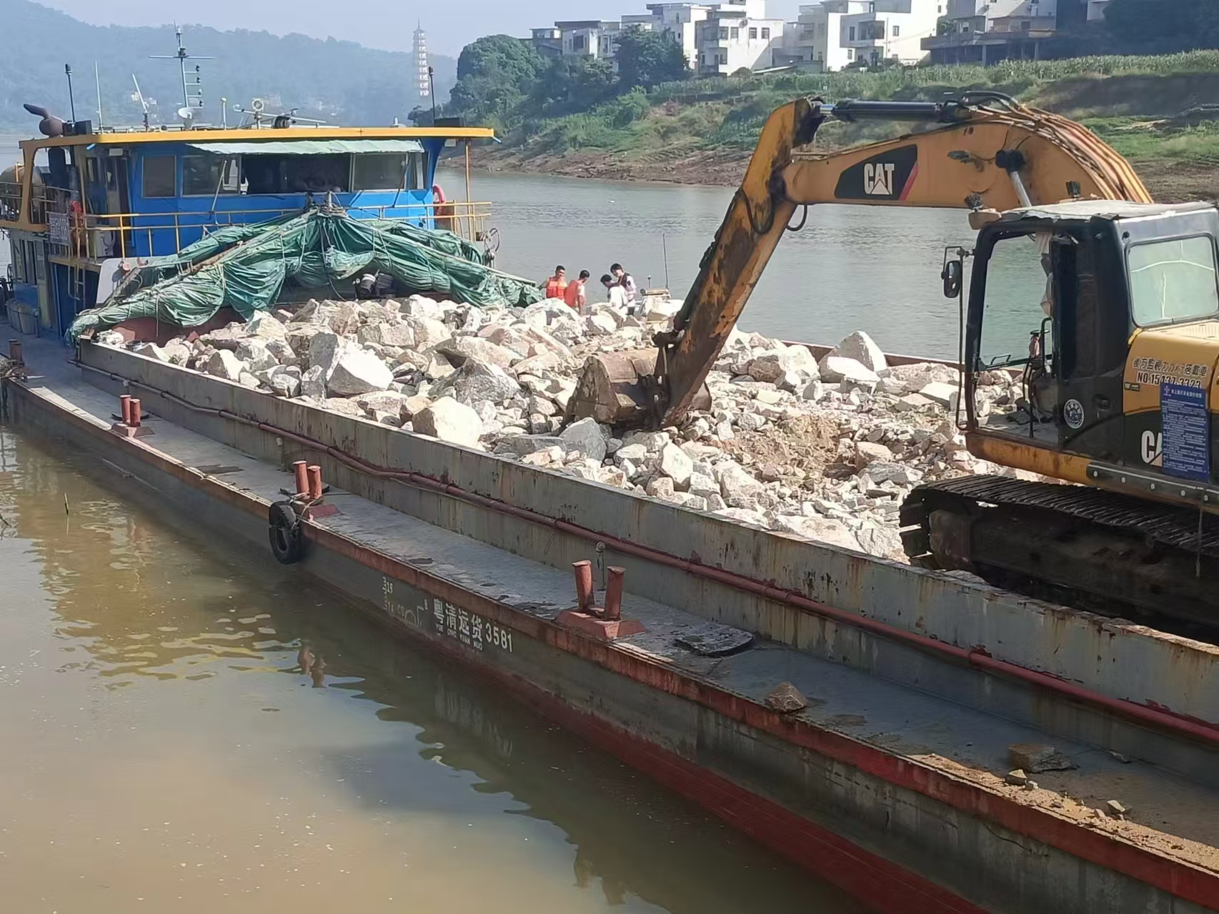 郁南縣2023年災后恢復建設項目開展水下拋石護腳作業(yè)