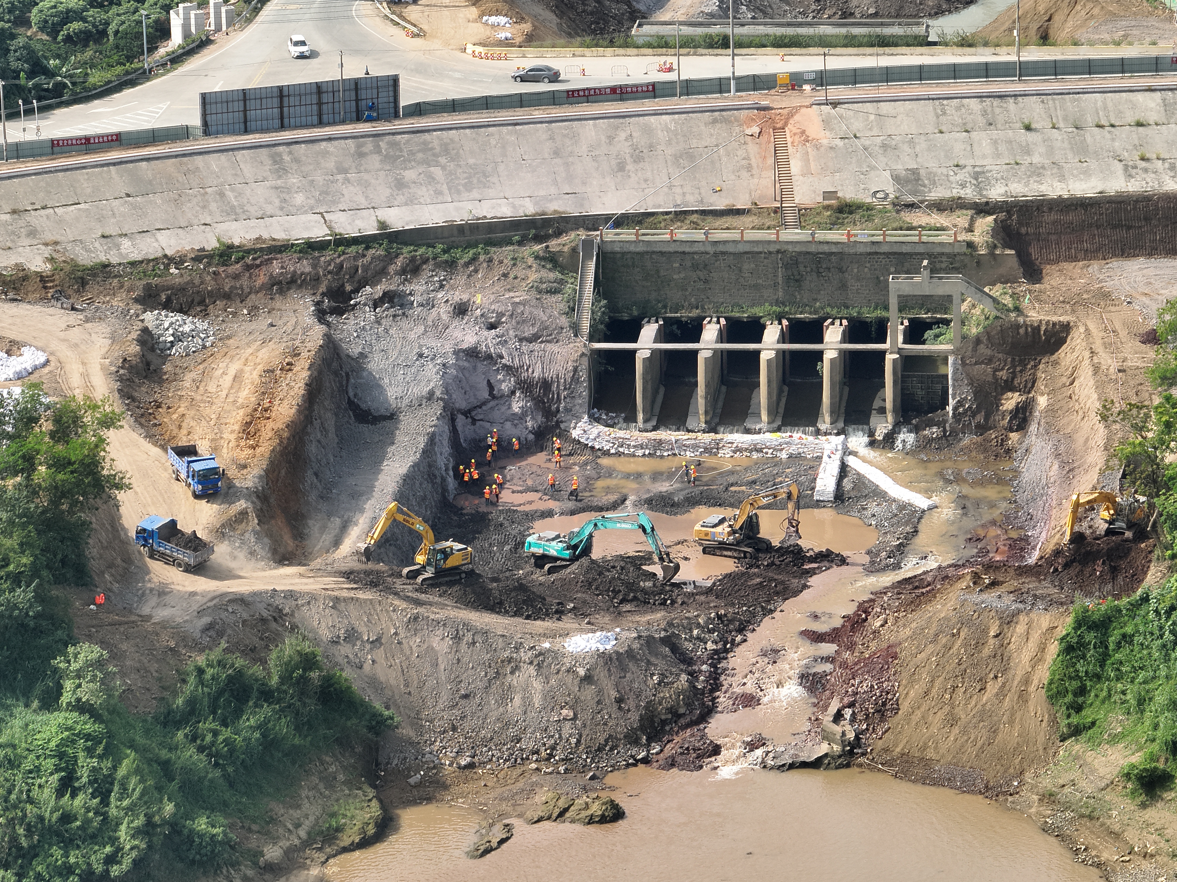 郁南縣鵝公沖水閘重建工程建設現(xiàn)場
