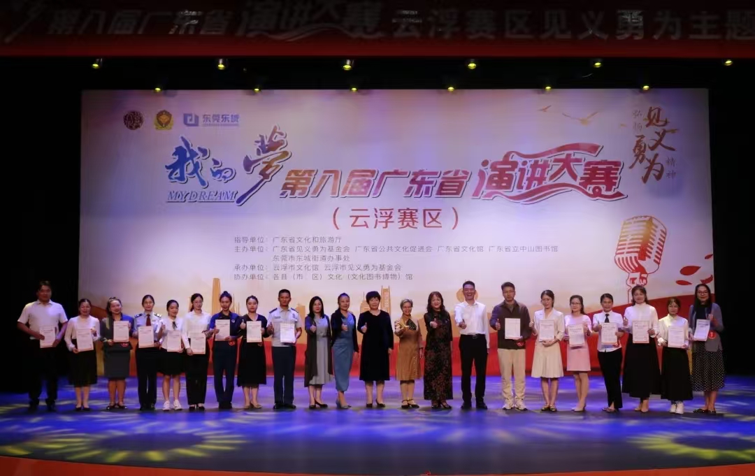10月26日,由廣東省文化和旅游廳指導(dǎo),廣東省見義勇為基金會(huì)、廣東省公共文化促進(jìn)會(huì)、廣東省文化館、廣東省立中山圖書館、東莞市東城街道辦事處聯(lián)合主辦,云浮市文化館、云浮市見義勇為基金會(huì)承辦,各縣(市、區(qū))文化(文化圖書博物)館協(xié)辦的“我的夢(mèng)”第八屆廣東省演講大賽(云浮賽區(qū))在云浮市文化館小劇場(chǎng)成功舉辦。