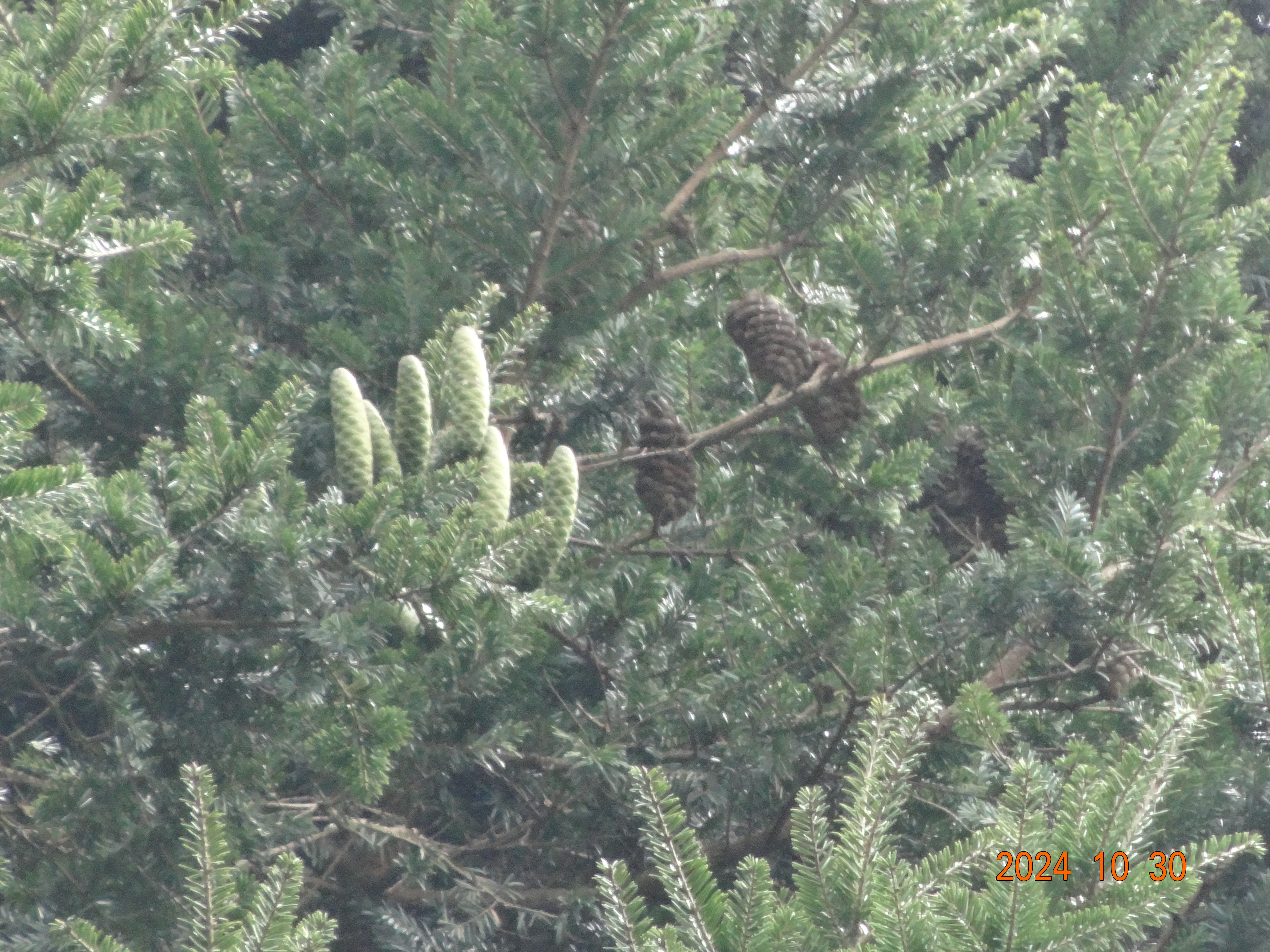 經(jīng)詢問周邊居民,該片江南油杉群為人工種植,種植時(shí)間大約在1976年,推算樹齡為48年左右?,F(xiàn)場(chǎng)江南油杉枝梢上有去年和今年的球果,今年的新果還并未成熟。