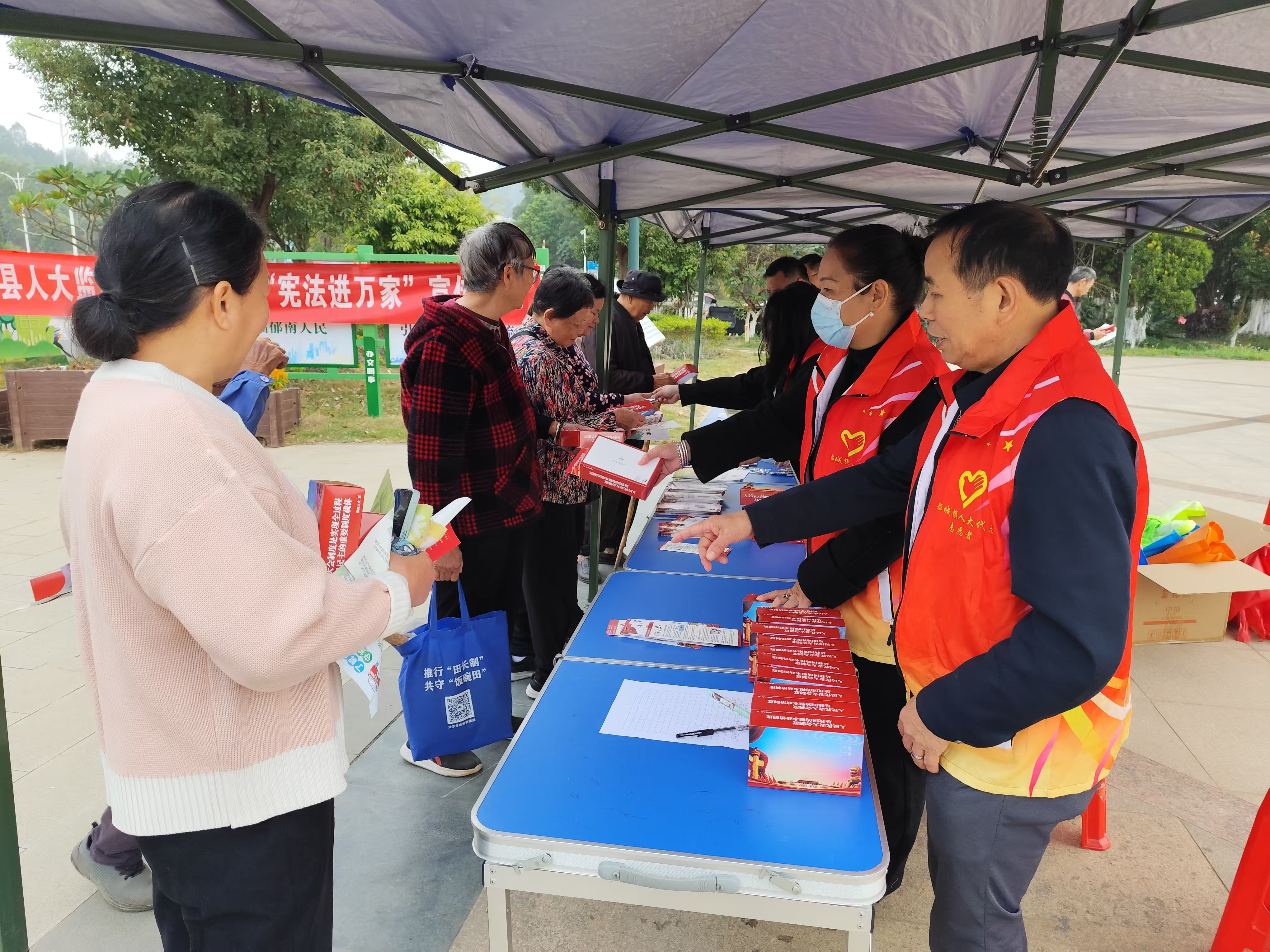 活動現(xiàn)場,縣、鎮(zhèn)人大代表圍繞憲法相關(guān)內(nèi)容,通過懸掛宣傳橫幅、設(shè)置宣傳展板、發(fā)放法律宣傳冊(本)、開展法律咨詢服務(wù)、派發(fā)紀(jì)念品等多種形式,向廣大群眾宣傳憲法精神、普及憲法知識,增強(qiáng)群眾尊法學(xué)法守法用法的意識。幫助群眾解答工作、生活中的法律問題。