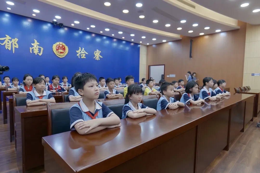 郁南縣人民檢察院“檢教同行,共護(hù)成長”檢察開放周拉開帷幕后,在全縣師生中引發(fā)熱烈反響。今天,郁南縣都城鎮(zhèn)中心小學(xué)的師生代表60多人到我院進(jìn)行實地打卡,通過沉浸式體驗,提升法治教育效果。