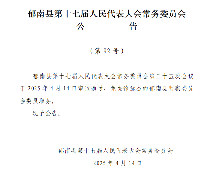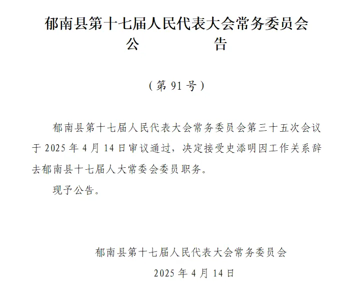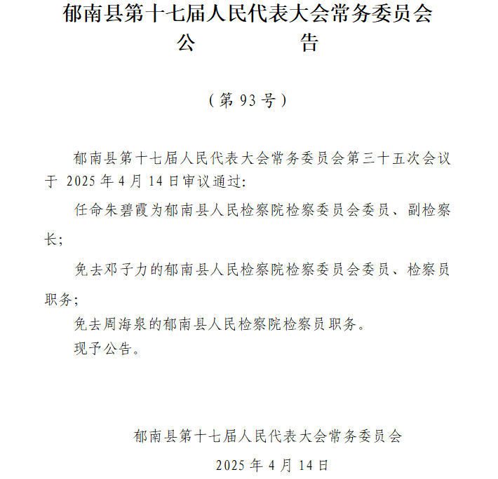郁南縣第十七屆人民代表大會常務(wù)委員會公告