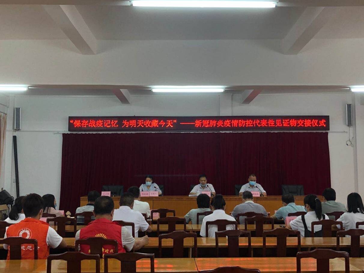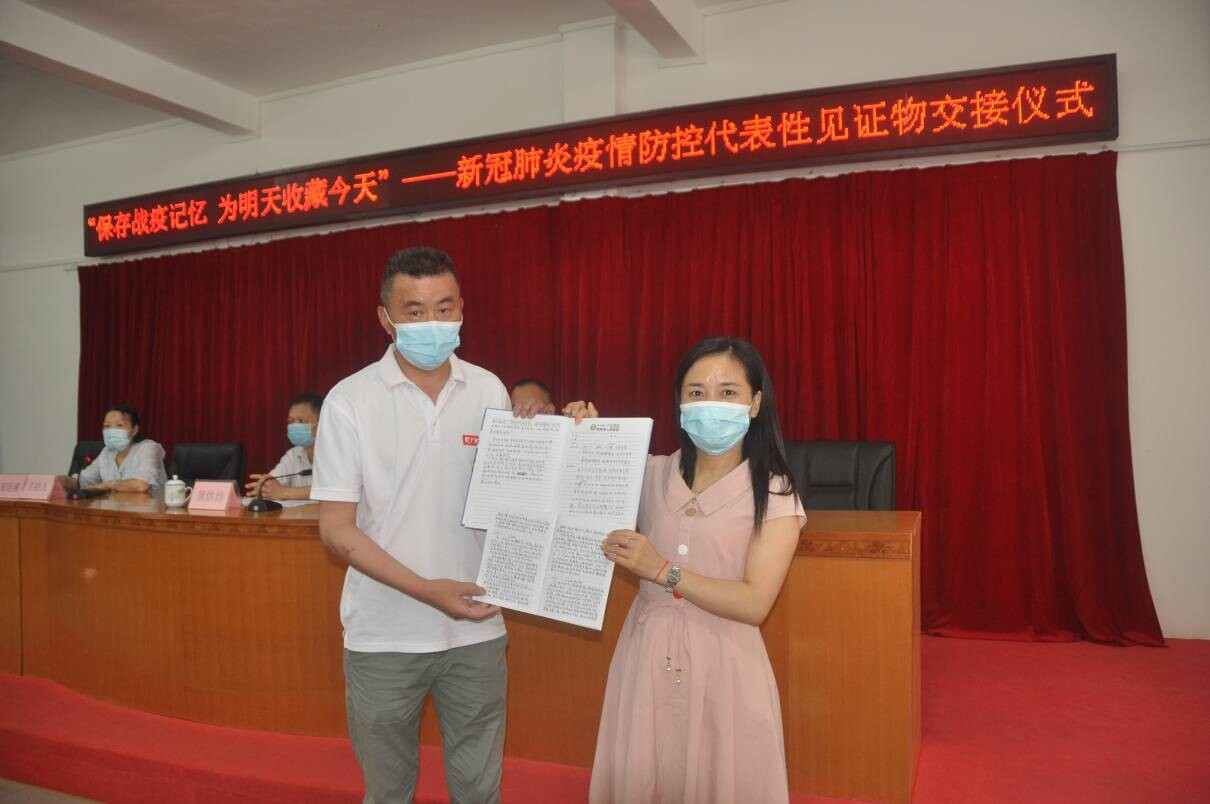 5月21日上午,“保存戰(zhàn)疫記憶 為明天收藏今天”---縣衛(wèi)健系統(tǒng)新冠肺炎疫情防控代表性見(jiàn)證物交接儀式在縣衛(wèi)生健康局六樓大會(huì)議室舉行??h衛(wèi)生健康局、縣新冠肺炎疫情防控指揮辦公室、縣文廣旅體局、縣志辦、縣疾控中心、縣人民醫(yī)院、縣中醫(yī)院、縣婦幼保健院相關(guān)領(lǐng)導(dǎo)以及我縣馳援湖北的五位英雄出席了儀式。儀式上,縣新冠肺炎疫情防控指揮辦、縣衛(wèi)健系統(tǒng)有關(guān)單位和抗疫英雄現(xiàn)場(chǎng)捐贈(zèng)了一批聚力助援抗疫的珍貴見(jiàn)證物,由郁南縣博物館收藏??h博物館向捐贈(zèng)者和單位頒發(fā)了收藏證書(shū)。