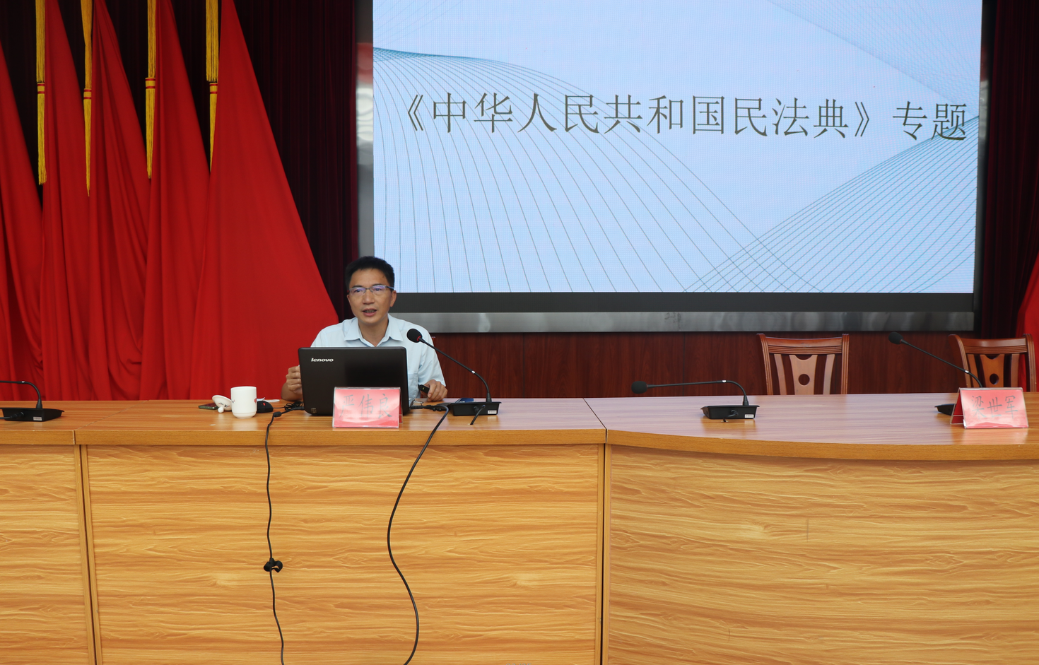 最后,云浮市律師協(xié)會會長、廣東翔浩律師事務(wù)所主任嚴(yán)偉良律師為培訓(xùn)學(xué)員作《民法典》專題報(bào)告。嚴(yán)律師結(jié)合多年的律師從業(yè)經(jīng)驗(yàn)通過案例形象生動地解釋《民法典》相關(guān)條款內(nèi)容,幫助大家進(jìn)一步熟悉、弄懂、會用《民法典》,提升法治思維和依法行政能力水平