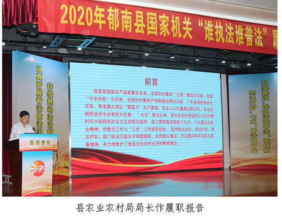 為深入貫徹落實(shí)習(xí)近平總書記全面依法治國新理念新思想新戰(zhàn)略,10月29日上午,郁南縣召開2020年國家機(jī)關(guān)“誰執(zhí)法誰普法”履職報(bào)告評(píng)議暨民法典學(xué)習(xí)宣傳推進(jìn)會(huì)??h委副書記、政法委書記梁世軍,縣委常委、宣傳部部長李永盈出席,履職報(bào)告評(píng)議團(tuán)成員、被評(píng)議單位以及各鎮(zhèn)、縣直副科以上單位、上級(jí)駐郁南各單位負(fù)責(zé)人及業(yè)務(wù)骨干等200多人參加。
