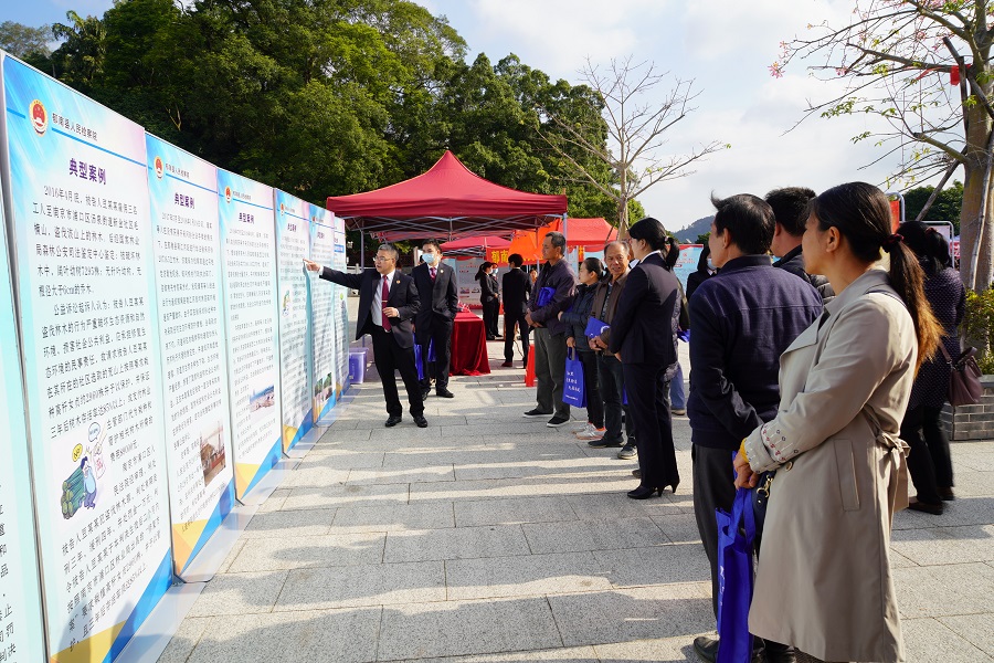為深入學(xué)習(xí)貫徹習(xí)近平法治思想,弘揚(yáng)憲法精神,加強(qiáng)新時(shí)代法律監(jiān)督工作,12月3日,郁南縣檢察院舉行“學(xué)習(xí)習(xí)近平法治思想,強(qiáng)化新時(shí)代法律監(jiān)督”檢察開(kāi)放日活動(dòng),首次以走進(jìn)鎮(zhèn)村形式開(kāi)展豐富多彩的普法宣傳活動(dòng)。當(dāng)?shù)厝舜蟠怼⒔處煂W(xué)生、群眾等200多人現(xiàn)場(chǎng)參與。