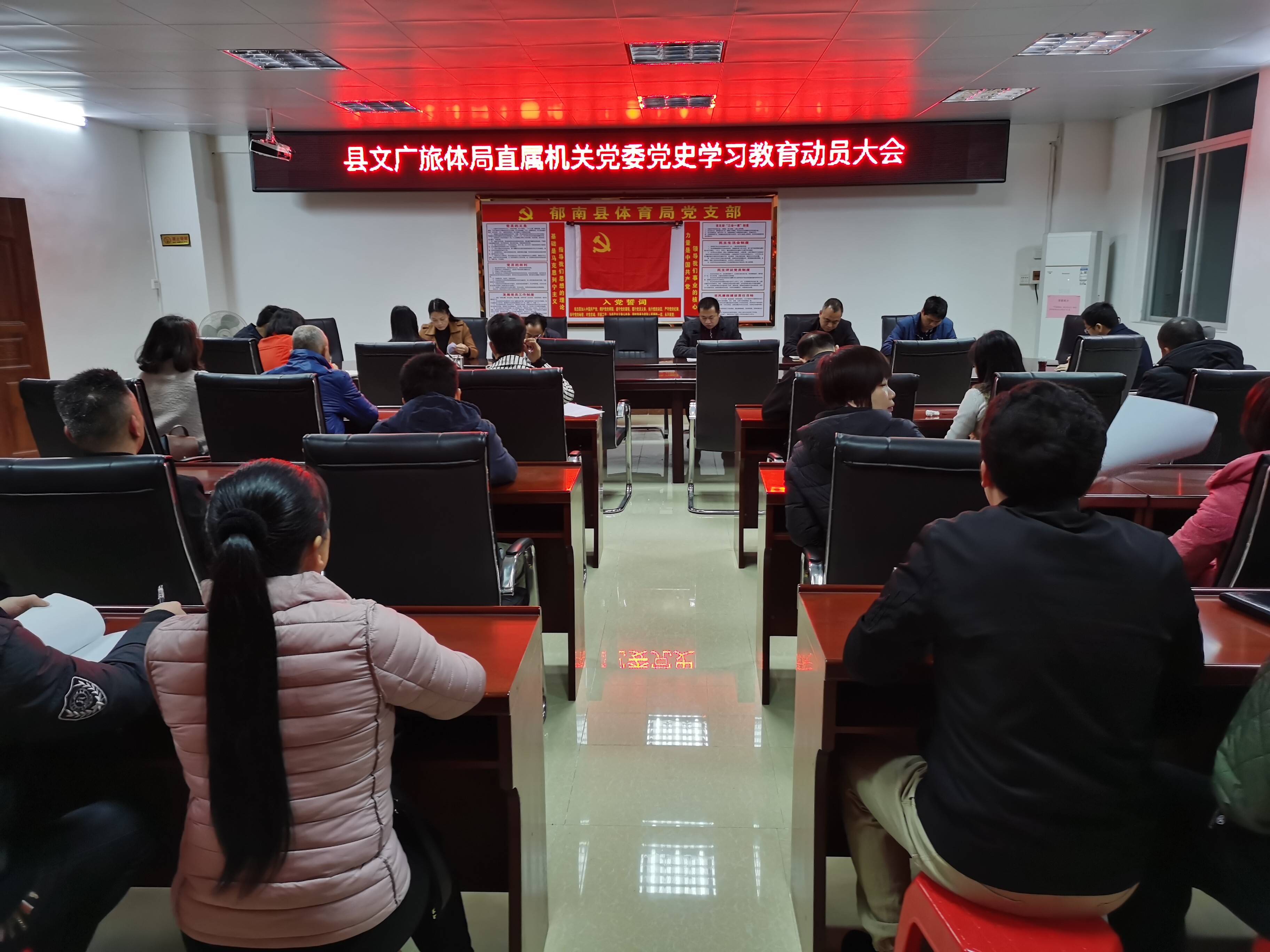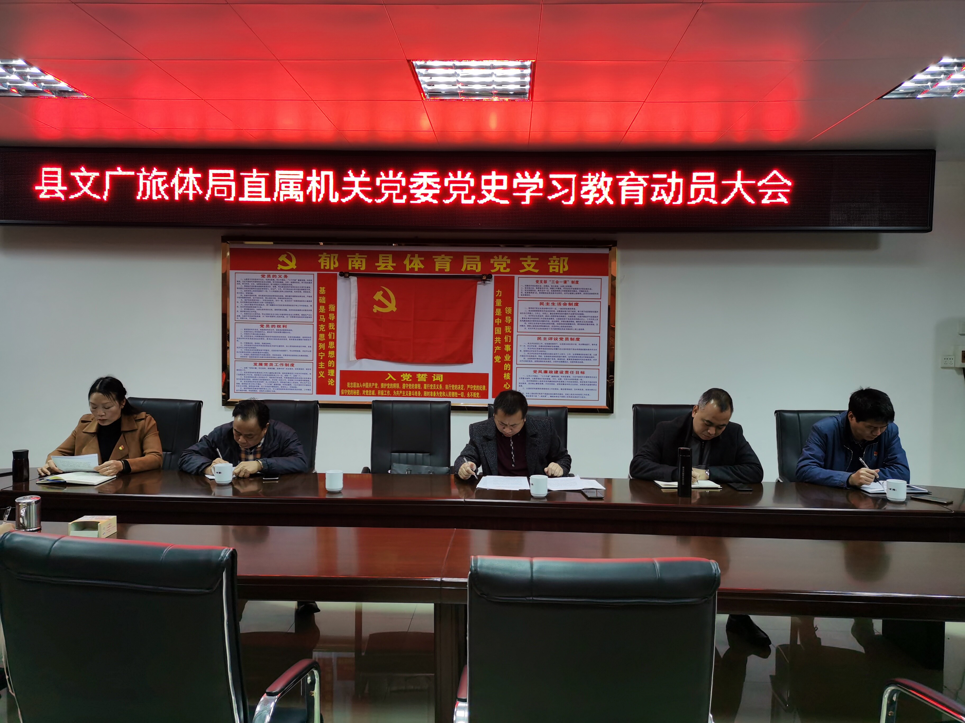 3月4日上午,郁南縣文廣旅體局直屬機(jī)關(guān)黨委召開(kāi)黨史學(xué)習(xí)教育動(dòng)員大會(huì)。會(huì)議傳達(dá)學(xué)習(xí)貫徹全國(guó)、全省、全市及全縣黨史學(xué)習(xí)教育動(dòng)員大會(huì)精神,對(duì)郁南縣文廣旅體局直屬機(jī)關(guān)黨委黨史學(xué)習(xí)教育工作進(jìn)行安排和部署,動(dòng)員廣大黨員干部學(xué)史明理、學(xué)史增信、學(xué)史崇德、學(xué)史力行。郁南縣文廣旅體局機(jī)關(guān)黨委委員、紀(jì)委委員,各黨支部負(fù)責(zé)人,三館一中心負(fù)責(zé)人,郁南縣文廣旅體局各股室(隊(duì))負(fù)責(zé)人,郁南縣文廣旅體局、郁南縣旅游局黨支部全體黨員共40多人參加了會(huì)議。