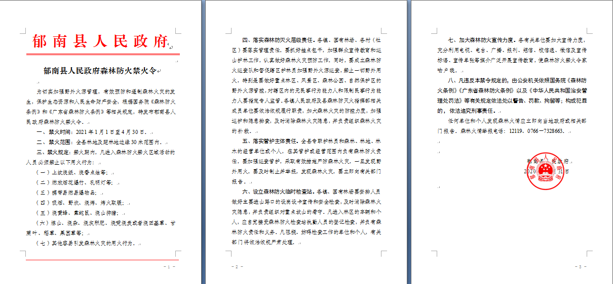▲郁南縣發(fā)布《郁南縣人民政府森林防火禁火令》