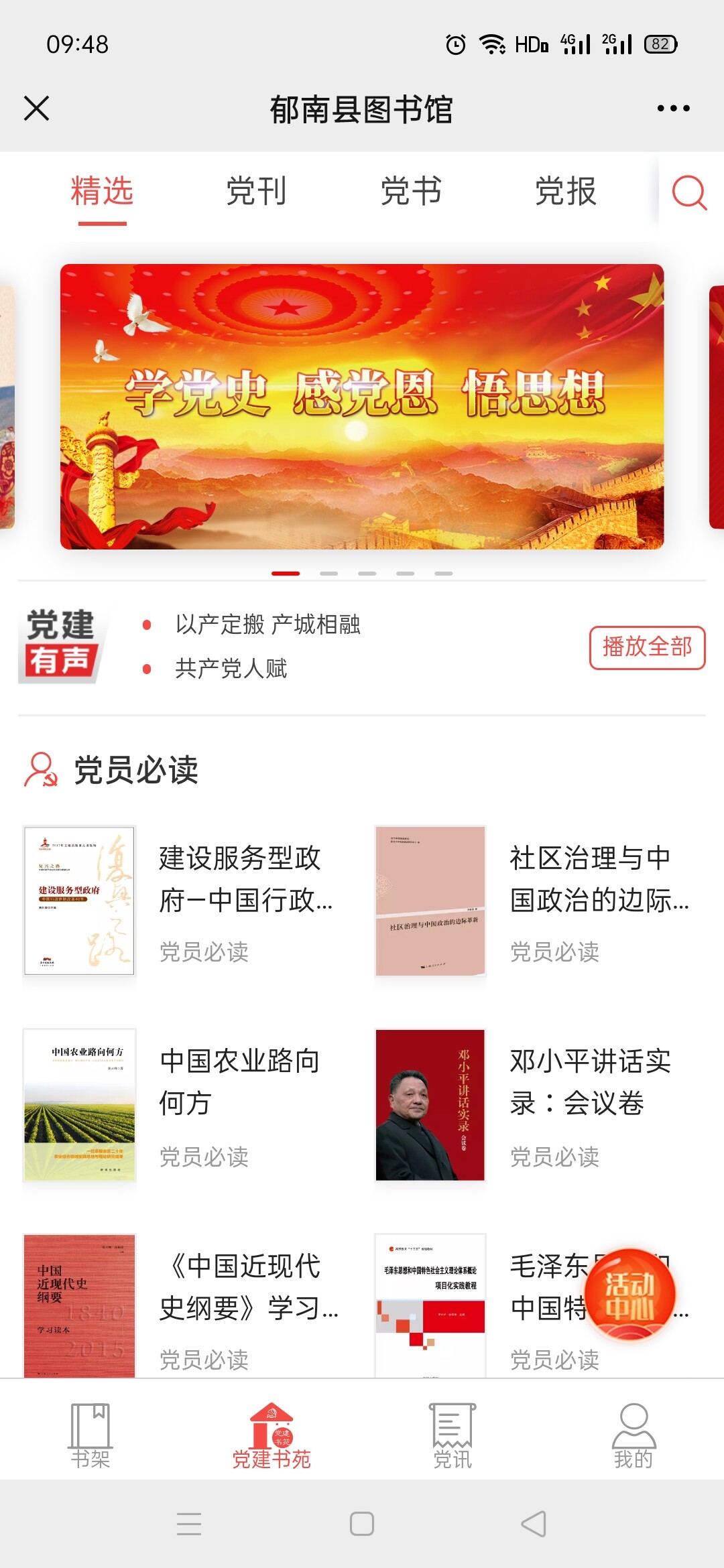 2021年是中國共產(chǎn)黨成立100周年,也是“十四五”開局之年和“兩個一百年”奮斗目標的重要歷史交匯點。為深入學習貫徹習近平總書記在黨史學習教育動員大會上的重要講話精神,在中國共產(chǎn)黨百年華誕來臨之際,郁南縣圖書館聯(lián)合博看網(wǎng)在郁南縣圖書館微信公眾號上開設(shè)“黨建微刊”專欄,內(nèi)含黨刊、黨書、黨報等欄目,為廣大黨員、群眾提供很好的線上黨史學習教育平臺。通過黨史學習,引導(dǎo)廣大黨員群眾學史明理、學史增信、學史崇德、學史力行,激發(fā)其愛黨之情、報國之志,以新?lián)斝伦鳛殚_啟新征程,全力以赴打造更高質(zhì)量更高水平的美麗郁南。