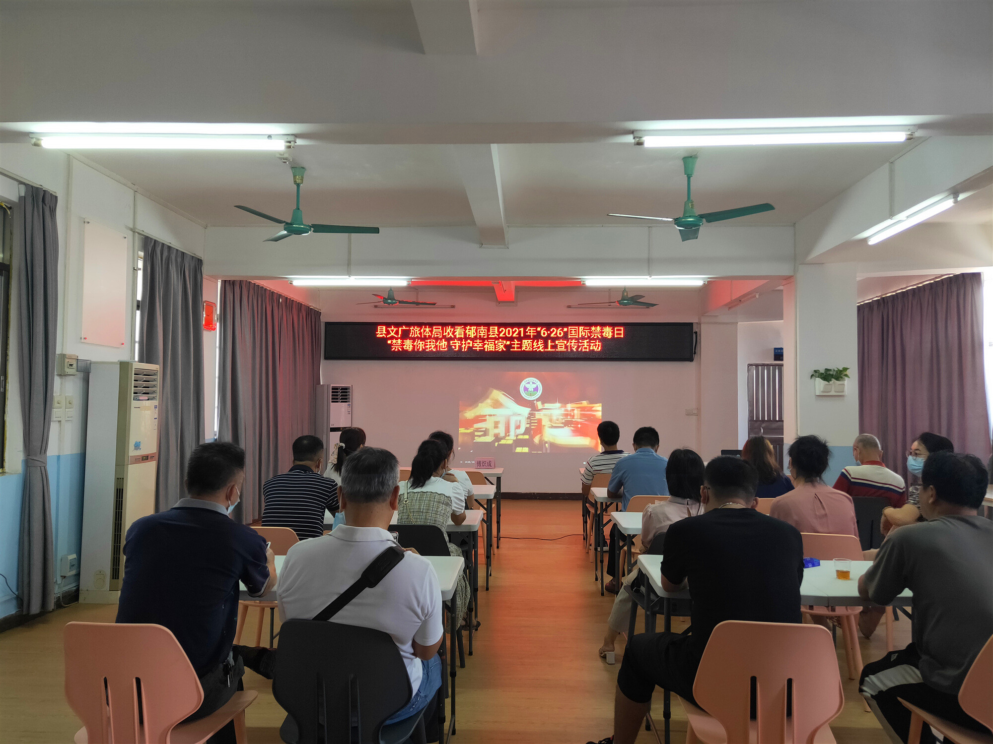 為進(jìn)一步加大禁毒宣傳力度,支持、參與禁毒工作,掀起禁毒宣傳熱潮,6月25日上午,郁南縣文廣旅體局組織干部職工在縣圖書(shū)館四樓視聽(tīng)室觀看郁南縣2021年“6·26”國(guó)際禁毒日“禁毒你我他 守護(hù)幸福家”主題線上宣傳活動(dòng)。郁南縣文廣旅體局黨組書(shū)記、局長(zhǎng)傅熾成,分管禁毒、行政執(zhí)法等工作的副局長(zhǎng)張世佳同志參加了活動(dòng)。