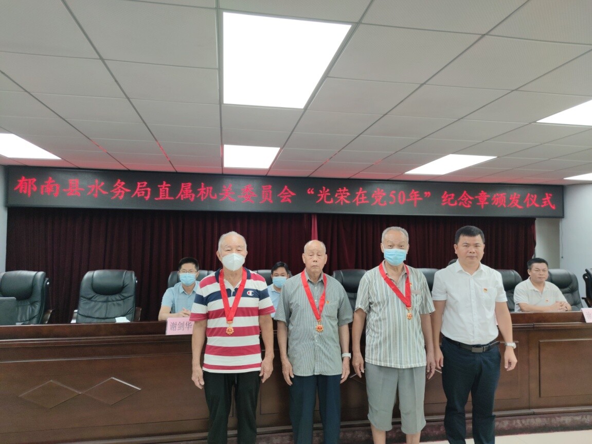 百年征程波瀾壯闊,五十余載初心不改。6月28日上午,郁南縣水務局舉行“光榮在黨50年”紀念章頒發(fā)儀式,向3名老黨員代表頒發(fā)紀念章,并向他們致以崇高敬意和誠摯問候。據(jù)統(tǒng)計,水務系統(tǒng)共有“光榮在黨50年”老黨員16人,他們初心不改,始終保持著對黨的忠誠和對水利的熱愛。