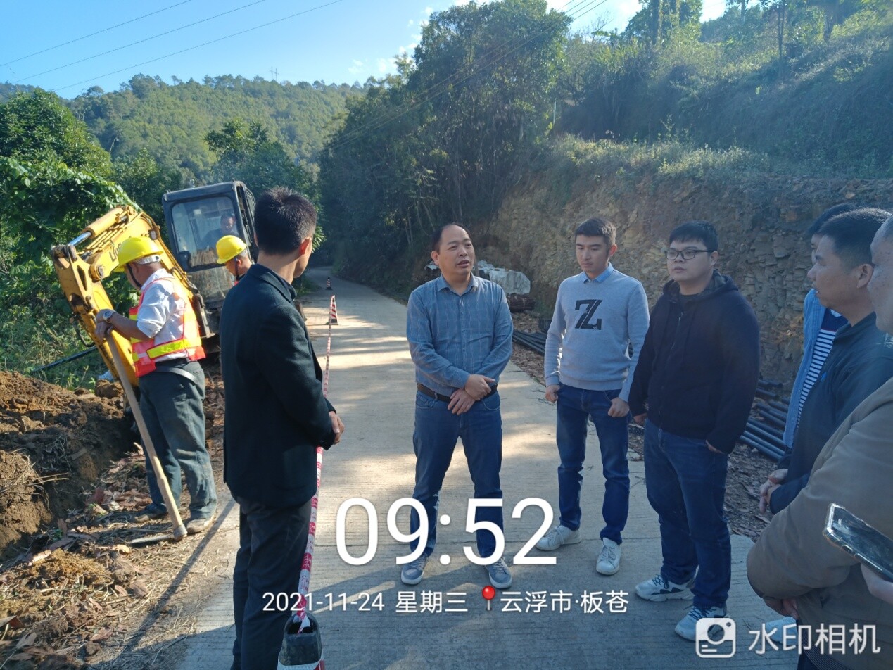 在通門鎮(zhèn)街坊村委板蒼村,劉炳榮一行實(shí)地察看施工現(xiàn)場(chǎng)點(diǎn)輸水管線施工情況,聽(tīng)取了鄉(xiāng)鎮(zhèn)和相關(guān)施工參建單位關(guān)于工作進(jìn)展情況的匯報(bào),并對(duì)全域自然村集中供水工作提出了具體要求。