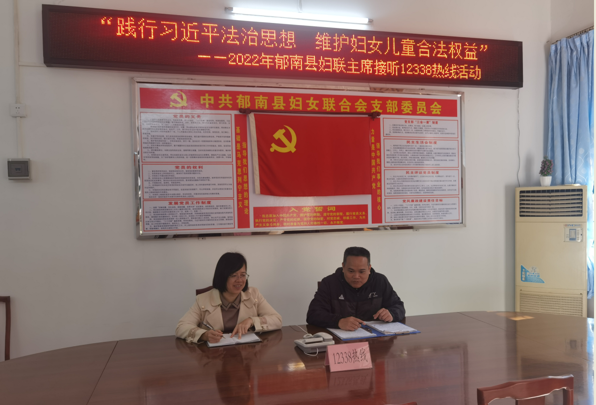 為引導(dǎo)廣大婦女及家庭學(xué)法遵法守法用法,依法維護(hù)自身合法權(quán)益,在全社會(huì)營(yíng)造男女平等、和諧共進(jìn)的良好氛圍,3月8日上午,縣婦聯(lián)聯(lián)合縣紀(jì)委、縣委政法委、縣司法局、縣總工會(huì)、團(tuán)縣委、縣法院、縣檢察院等相關(guān)單位在縣城文化廣場(chǎng),舉辦“踐行習(xí)近平法治思想維護(hù)婦女兒童合法權(quán)益”郁南縣2022年“三八”婦女維權(quán)周暨廉潔文化進(jìn)家庭宣傳咨詢活動(dòng)和開(kāi)展婦女維權(quán)熱線12338主席接聽(tīng)日活動(dòng)。