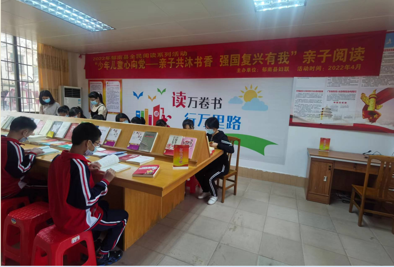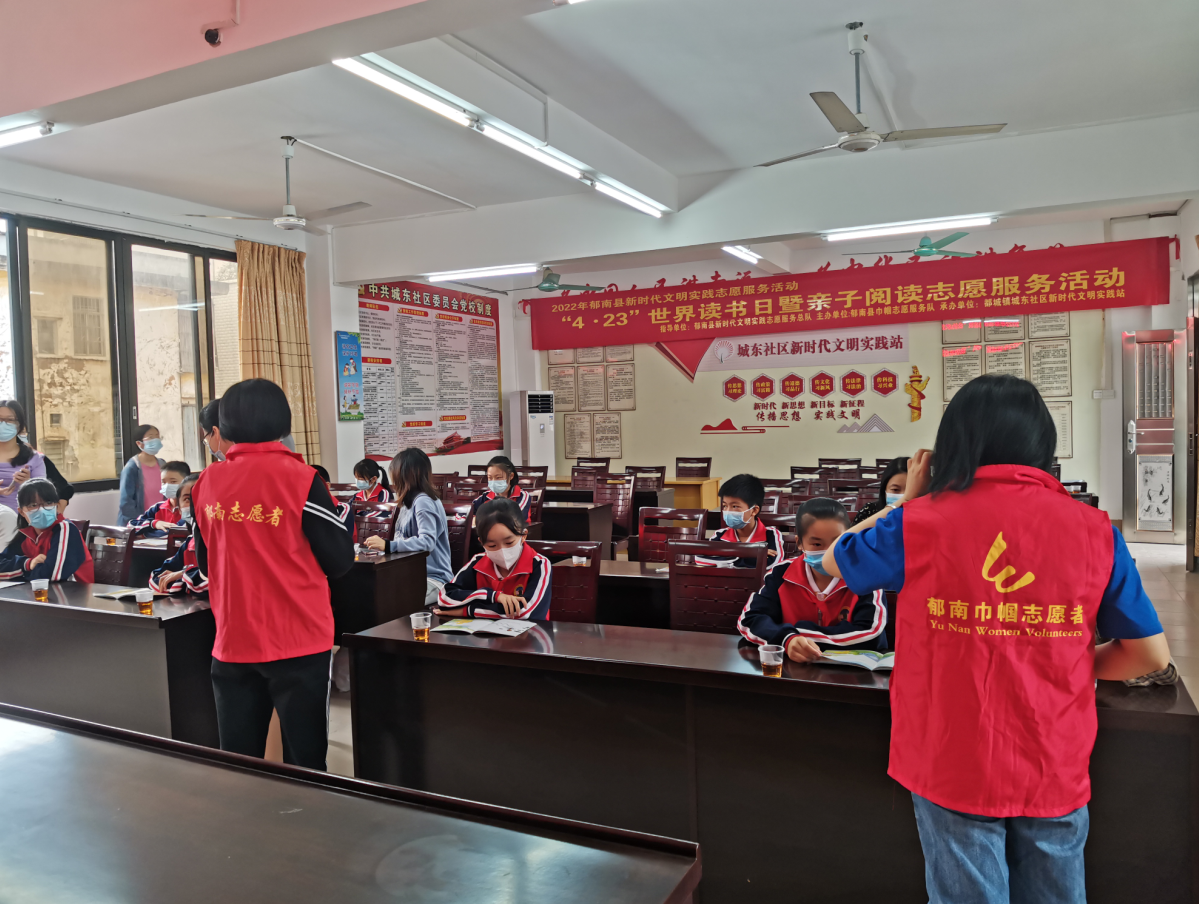 圍繞喜迎黨的二十大, 深化親子閱讀主題實(shí)踐活動(dòng),在4月23日第27個(gè)世界讀書日來臨之際,4月22日,縣婦聯(lián)聯(lián)合都城鎮(zhèn)城東社區(qū)開展2022年郁南縣全民閱讀系列活動(dòng)——“少年兒童心向黨——親子共沐書香 強(qiáng)國復(fù)興有我”親子閱讀活動(dòng),并組織巾幗志愿者開展相關(guān)志愿服務(wù)活動(dòng),此次活動(dòng)共30余名家長和孩子參與。