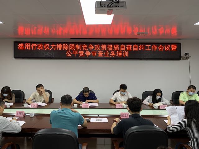 會議傳達貫徹了《廣東省市場監(jiān)督管理局關(guān)于開展制止濫用行政權(quán)力排除限制競爭執(zhí)法專項行動的通知》(粵市監(jiān)反壟斷〔2022〕191號)文件精神和省市場監(jiān)管局視頻會議精神,并對縣內(nèi)開展濫用行政權(quán)力排除限制競爭政策措施自查自糾工作進行部署。與會人員共同學(xué)習(xí)了《公平競爭審查制度實施細則》及各地濫用行政權(quán)力限制排除競爭相關(guān)案例,深入了解本次濫用行政權(quán)力排除限制競爭自查自糾的工作重點。
