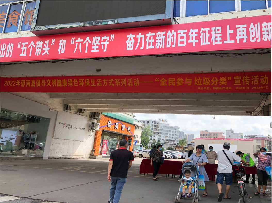 為深入貫徹落實(shí)習(xí)近平生態(tài)文明思想,營(yíng)造全社會(huì)共同參與垃圾分類(lèi)的良好氛圍,引導(dǎo)廣大群眾增強(qiáng)垃圾分類(lèi)的緊迫感和自覺(jué)性,提高群眾知曉率和參與度,4月25日,郁南縣住建局開(kāi)展2022年郁南縣倡導(dǎo)文明健康綠色環(huán)保生活方式系列活動(dòng)--“全民參與 垃圾分類(lèi)”宣傳活動(dòng)。