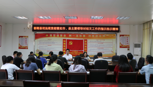 6月13日,郁南縣司法局召開貫徹落實市、縣主要領(lǐng)導(dǎo)對創(chuàng)文工作的指示批示精神會議,迅速傳達(dá)市委、縣委主要領(lǐng)導(dǎo)關(guān)于創(chuàng)文工作的批示精神,要求全體干部職工切實提高政治站位,強(qiáng)化責(zé)任擔(dān)當(dāng),壓實工作責(zé)任,細(xì)化工作任務(wù),不折不扣貫徹落實市委、縣委部署要求,全力以赴為我縣創(chuàng)建廣東省縣級文明城市貢獻(xiàn)最大力量。