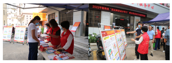 活動現(xiàn)場,青年普法志愿者們通過制作電子橫幅、發(fā)放宣傳單、提供法律咨詢等多種形式,向群眾宣講民法典里買賣和租賃等重要合同、常見侵權(quán)責任、婚姻家庭涉及的財產(chǎn)問題等與群眾生活相關(guān)的法律知識和遇到矛盾糾紛的正確救濟途徑。同時結(jié)合平安建設(shè)、夏季治安打擊整治“百日行動”等開展宣傳,累計發(fā)放宣傳冊子、圍裙、扇子、環(huán)保袋等宣傳品400余份,助力普法惠民、普法利民、普法便民。