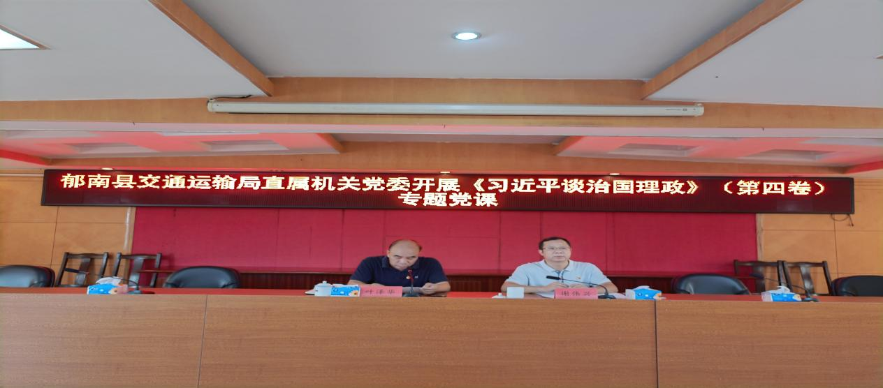 在黨的二十大召開之際,為進(jìn)一步提升交通運(yùn)輸系統(tǒng)黨員干部政治素養(yǎng)和黨性修養(yǎng),不斷加深黨員干部“兩個(gè)確立”決定性意義的認(rèn)識(shí),以高度的政治責(zé)任感和飽滿的精神狀態(tài)迎接黨的二十大,自覺做到忠誠擁護(hù)“兩個(gè)確立”、堅(jiān)定踐行“兩個(gè)維護(hù)”。2022年9月14日上午,郁南縣交通運(yùn)輸局直屬機(jī)關(guān)黨委圍繞“開辟新境界 實(shí)現(xiàn)新飛躍”為主題,開展《習(xí)近平談治國理政》第四卷專題黨課活動(dòng)??h交通運(yùn)輸局黨委書記、局長葉澤華同志作主講,交通運(yùn)輸系統(tǒng)全體黨員參加會(huì)議。